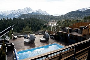 Читать полностьюРусская баня с бассейном и зоной отдыха. В самой парилке и в зоне отдыха Вы можете наслаждаться головокружительными видами на горы с панорамных окон на всю стену. С предбанника можно выйти прямо на открытую террасу с подогреваемым бассейном и зоной отдыха с шезлонгами и безупречными видами на горы.