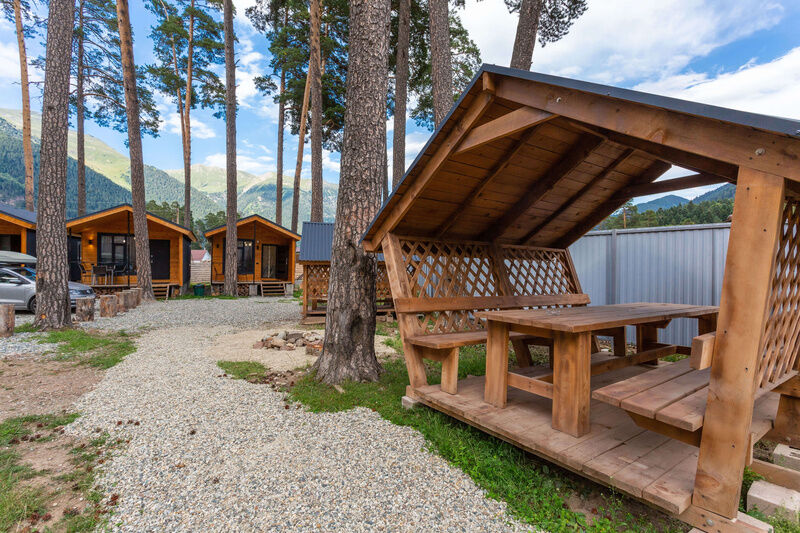 Гости могут отдохнуть в открытом солнечном внутреннем дворе с видом на горы Архыза. Рядом с каждым домом есть беседка и собственная площадка для барбекю. На территории обустроена бесплатная парковка для гостей.