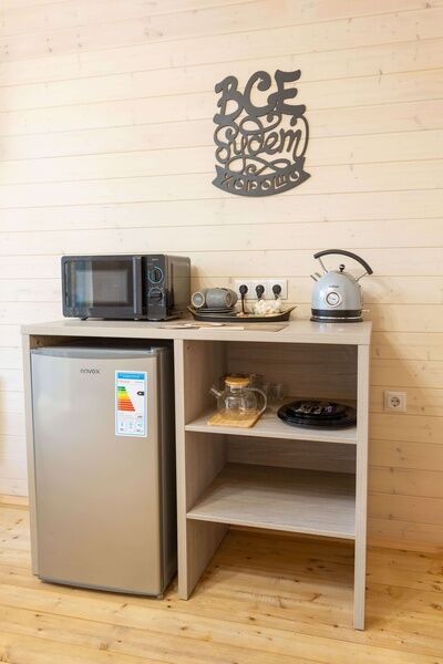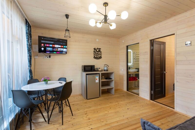 • комната-студия с раскладывающимся диваном на 2 полноценных места, обеденный стол, ТВ со SmartTV, Wi-fi, холодильник, чайник, микроволновая печь и вся необходимая посуда.