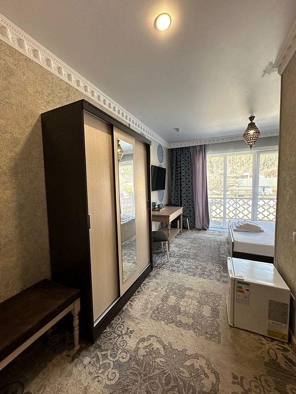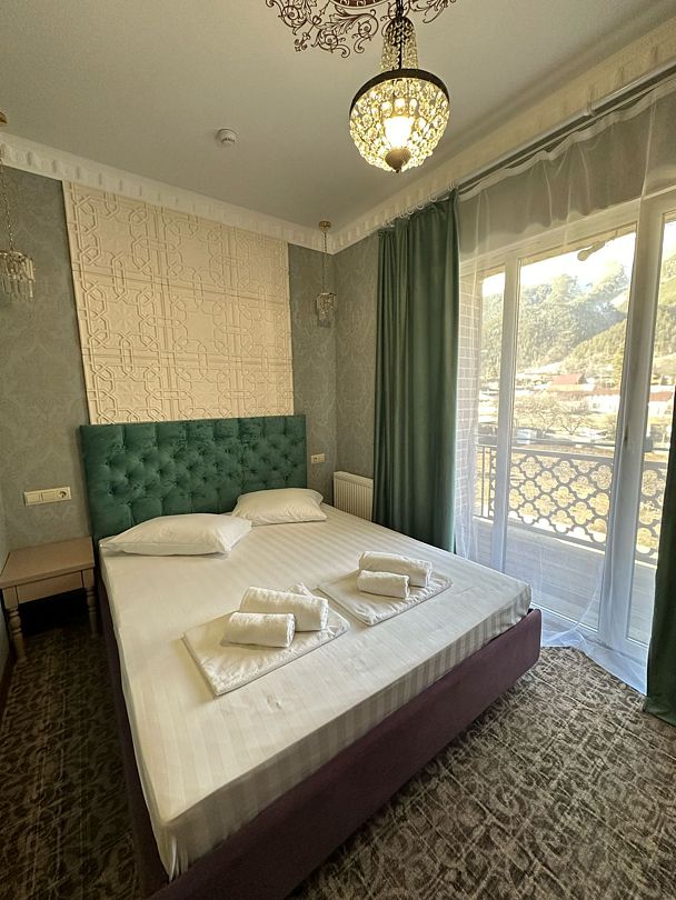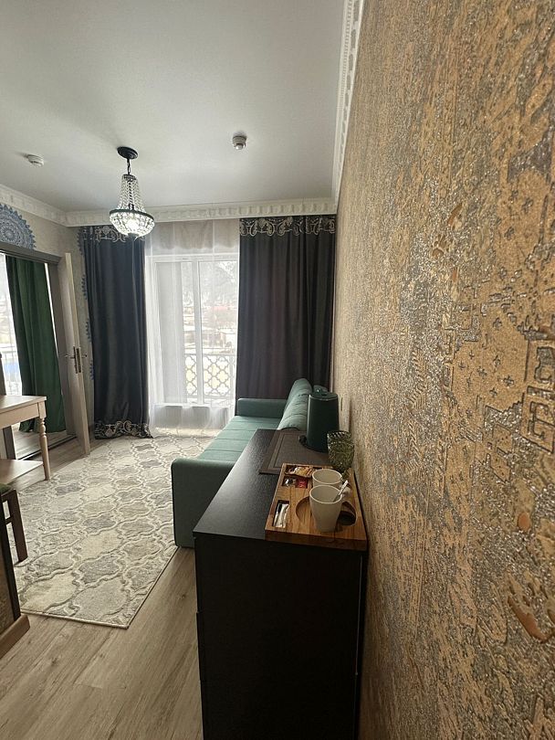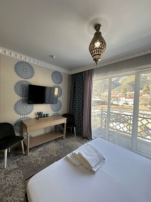 Все номера имеют вид на горы, а дизайн вдохновлен восточным искусством и культурой разных стран. Рядом с гостиницей расположены магазины, кафе и прокаты инвентаря. Удаленность от канатной дороги 11 км.