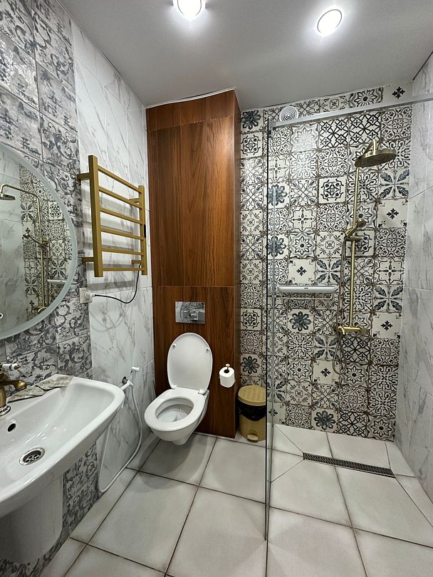 телевизор, кровать, шкаф, стол, стул, сан/узел