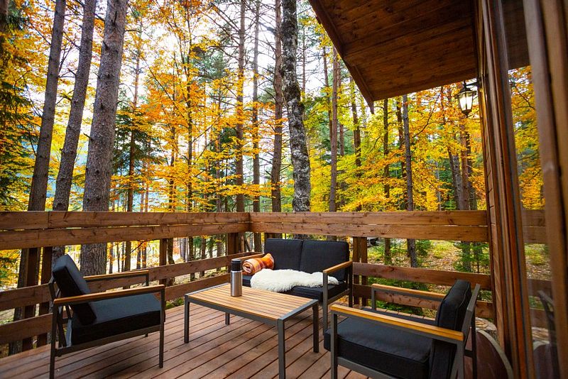С большой террасы открываются невероятные по красоте виды на горы и лес. А удаленность от остальных шале позволит погрузиться в тишину и красоту окружающей природы.