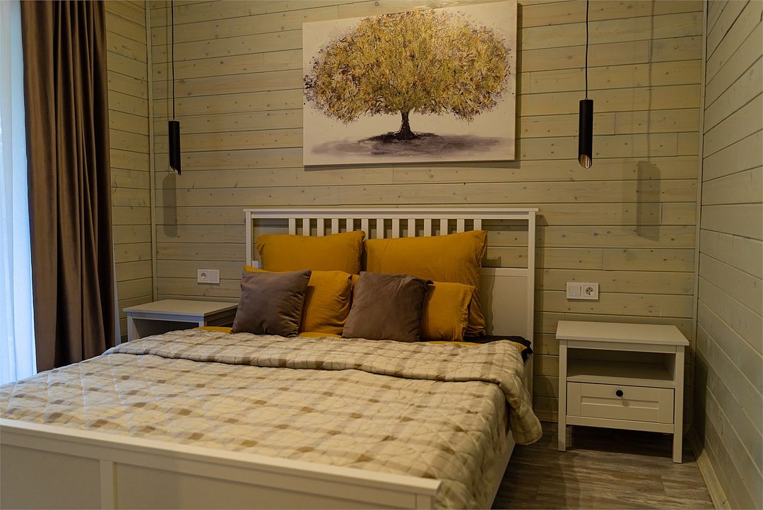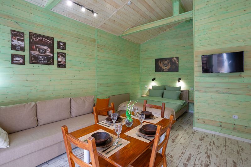 Просторный дом-шалаш с 2-мя спальнями на втором этаже и просторной гостиной на первом площадью 70 м2.
