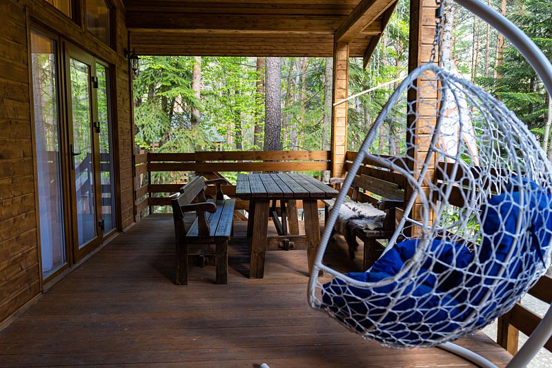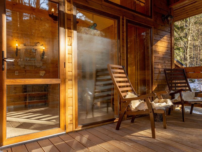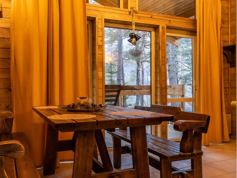 Классическое шале с большой террасой, 2-мя спальнями и кухней гостиной в глубине хвойного леса. Подойдёт как для большой семьи, так и компании друзей.