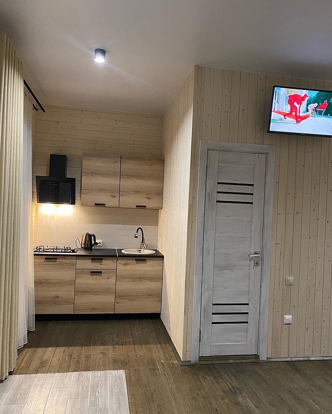 Дом-студия со своей кухней. Полностью оборудована всем необходимым.