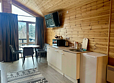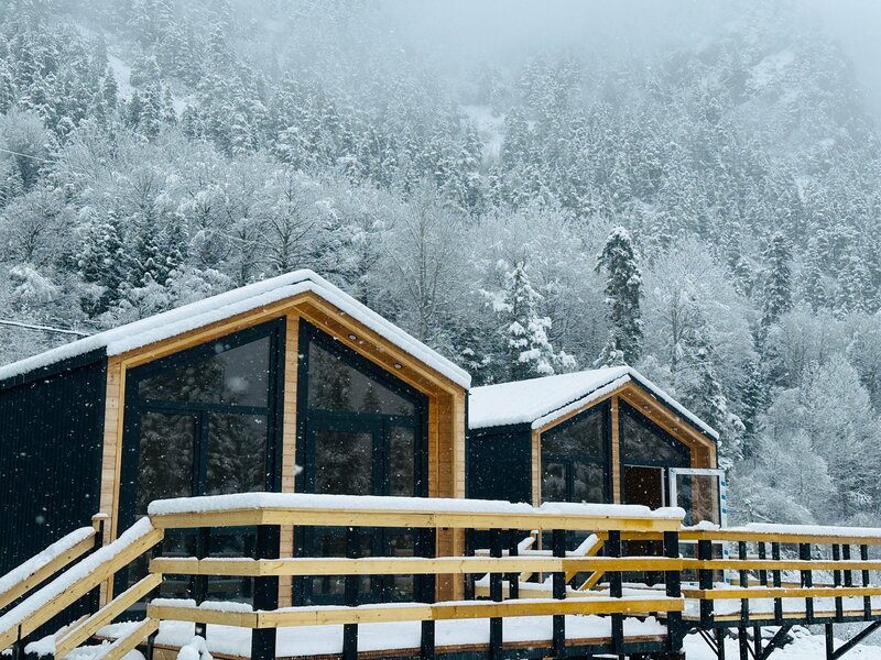 Уютные барнхаусы для отдыха с видом на горы, реку и лес. Каждый коттедж рассчитан на проживание четырех человек: кухня-гостиная, изолированная спальня, санузел.