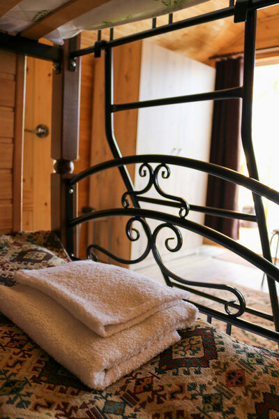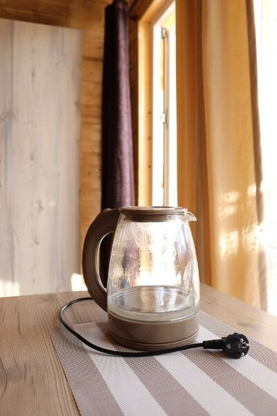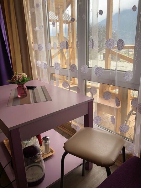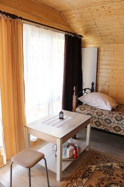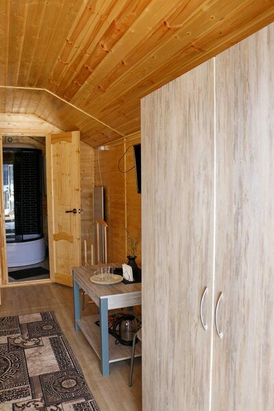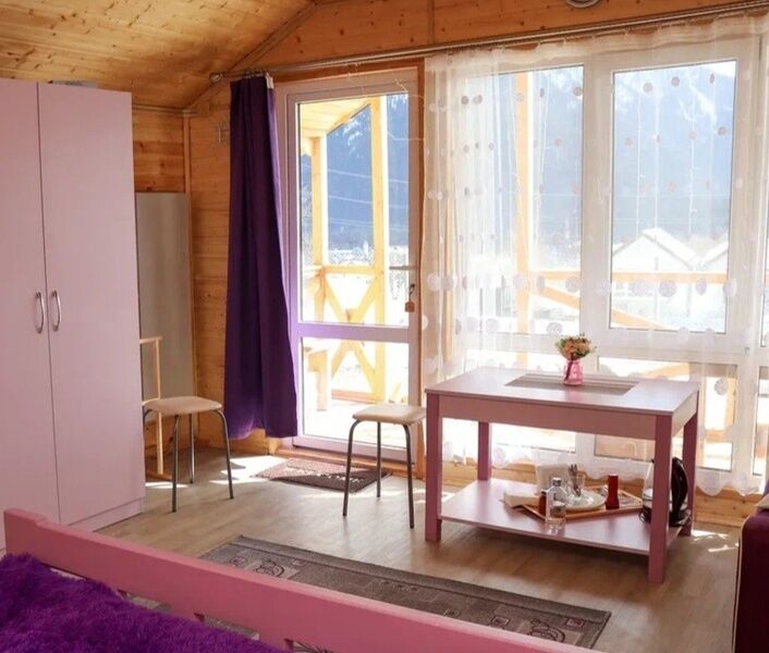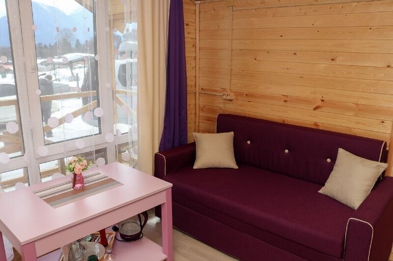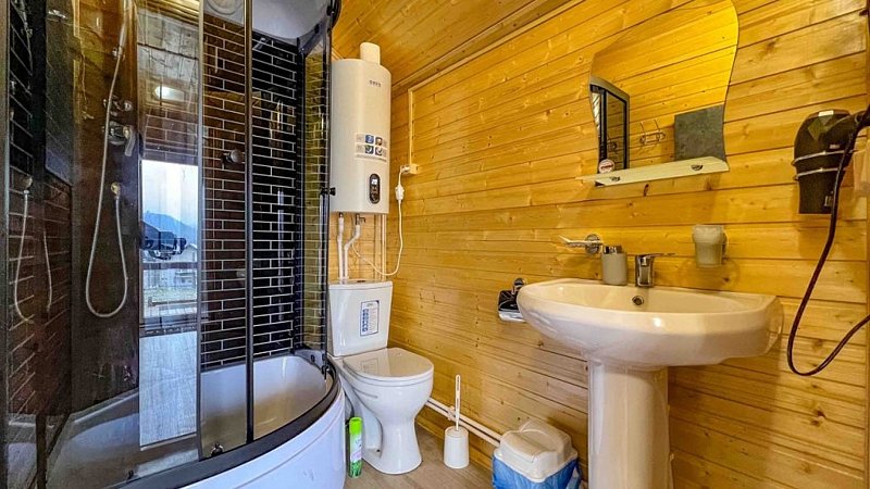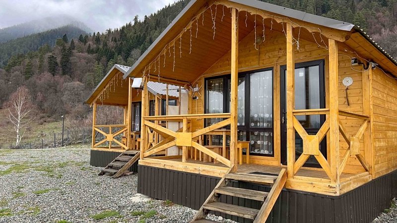 - комфортные условия: в каждом домике есть собственный санузел с душем, индивидуальная система обогрева, терраса с прекрасным видом на горы, а также вся необходимая бытовая техника — телевизор, электрочайник, фен, мини-холодильник, микроволновая печь;