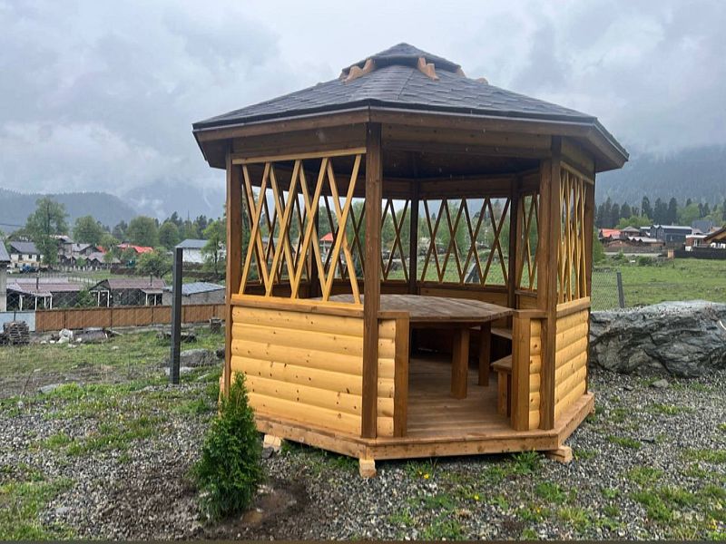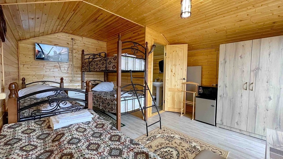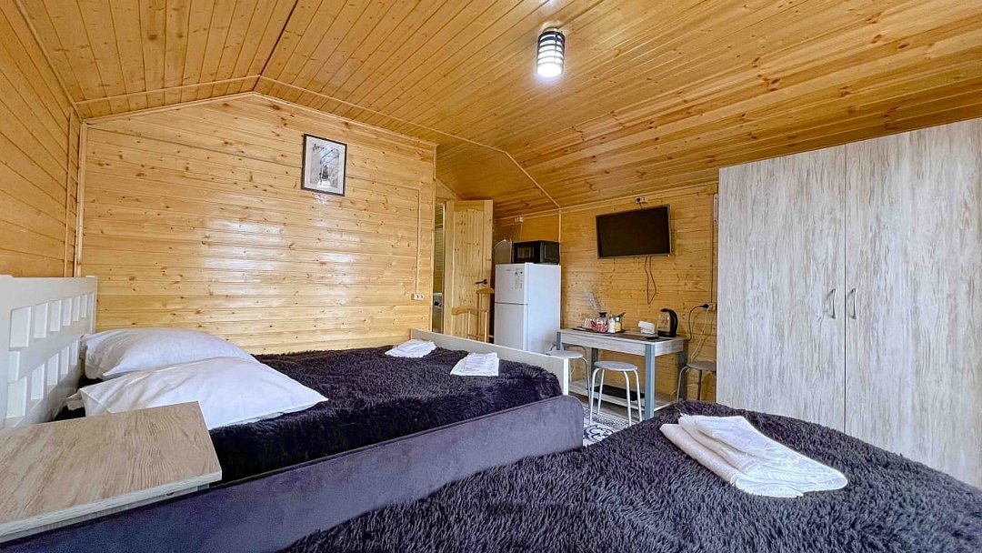 Четырехместный домик со всеми удобствами с видом на горы и поселок! Имеется собственная ванная комната.Услуги и удобства