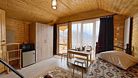 Wi-Fi, холодильник, фен, микроволновая печь, обогреватель, душевая кабина, водонагреватель, банные полотенца, терраса, двуспальная кровать, диван, стулья, шкаф для одежды, вешалки, унитаз, раковина, мягкая мебель, отдельный вход в номер, душ, стул, стол, тумба, туалет, панорамные окна, цифровое тв, диван-кровать, вид на горы, вид на лесВ коттедже