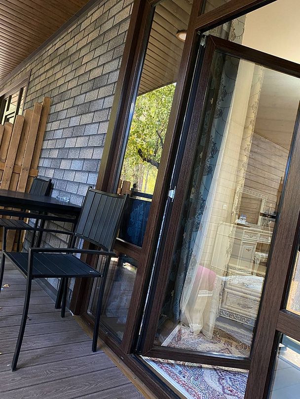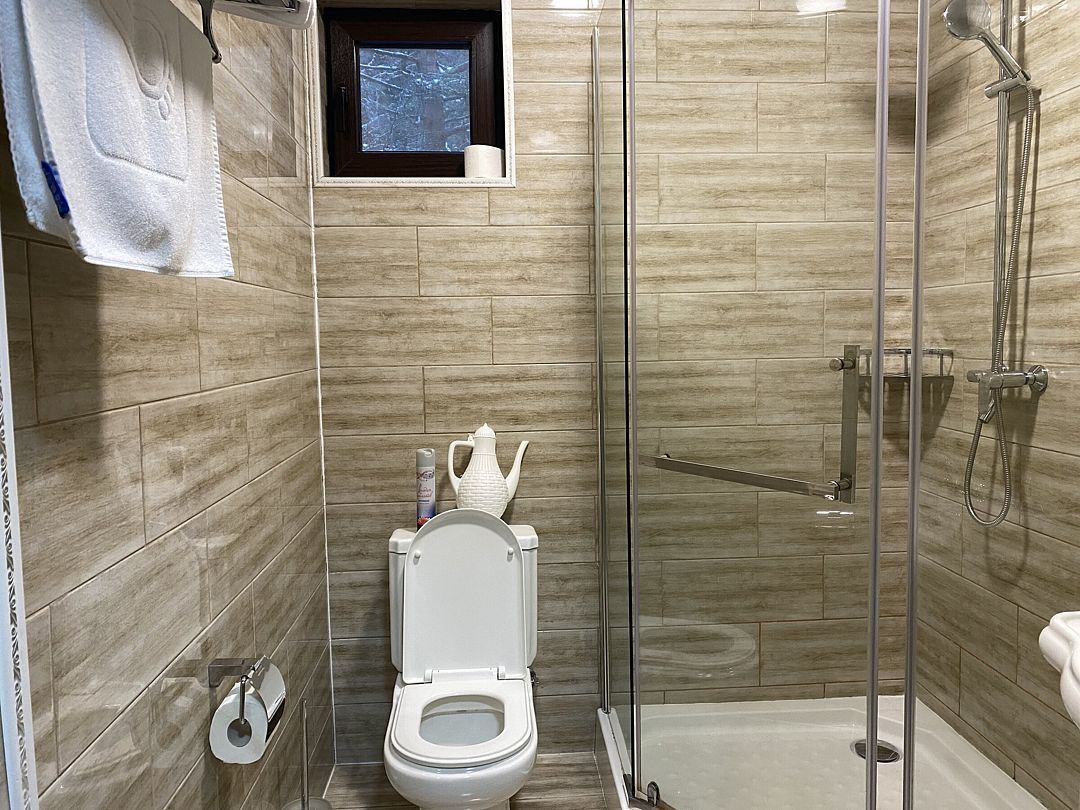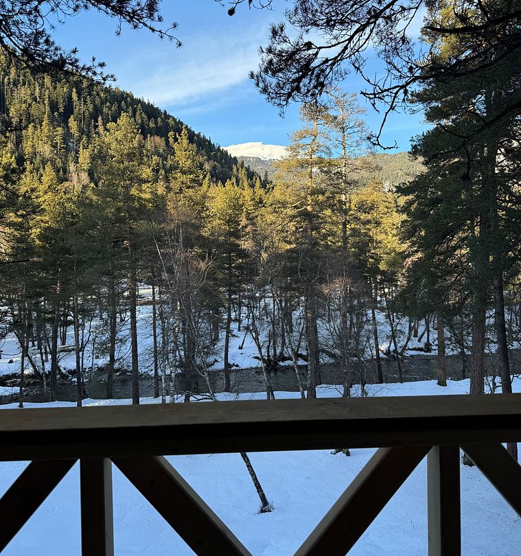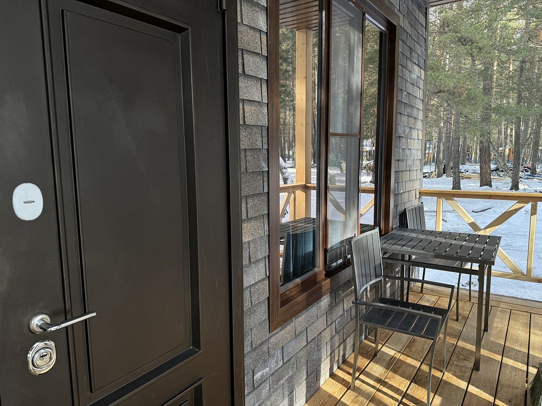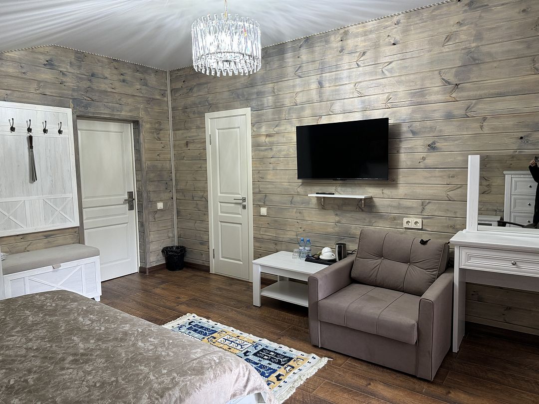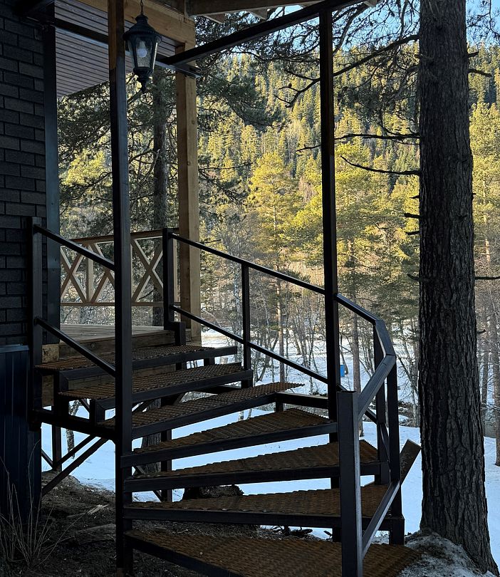Уютный просторный двухкомнатный номер — отличный вариант для большой семьи или небольшой компании. Есть свой отдельный вход, терраса с видом на лес, реку и горы.