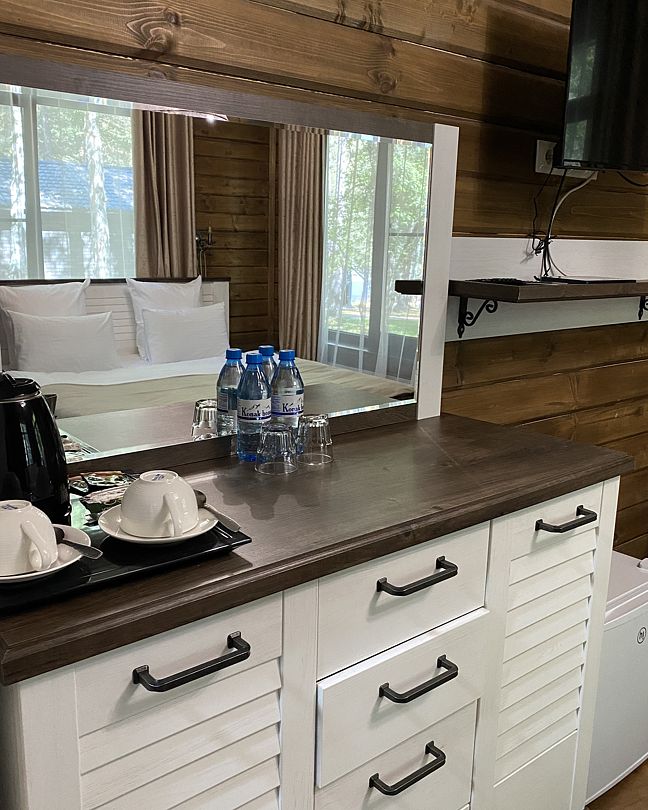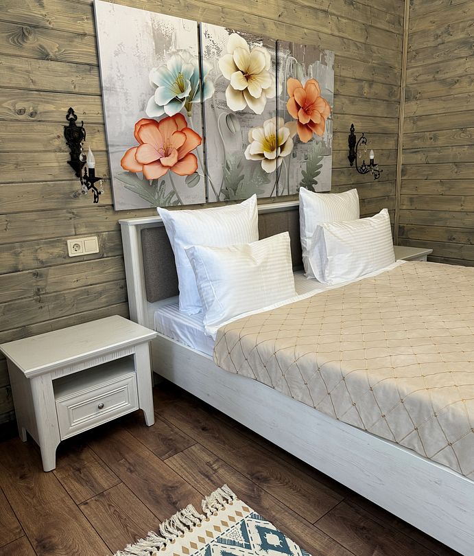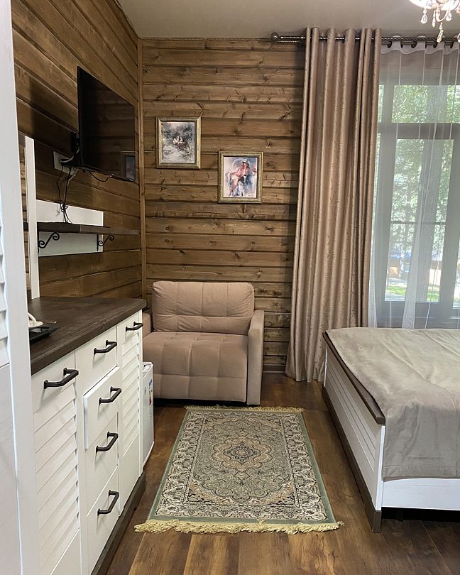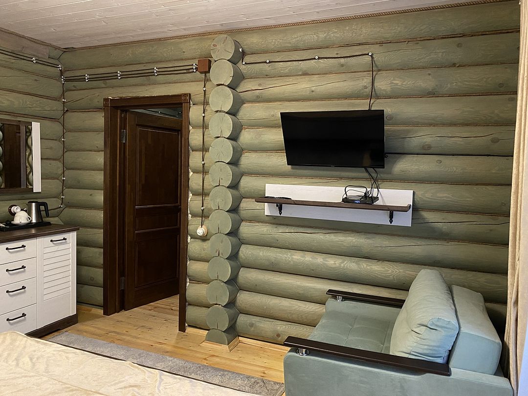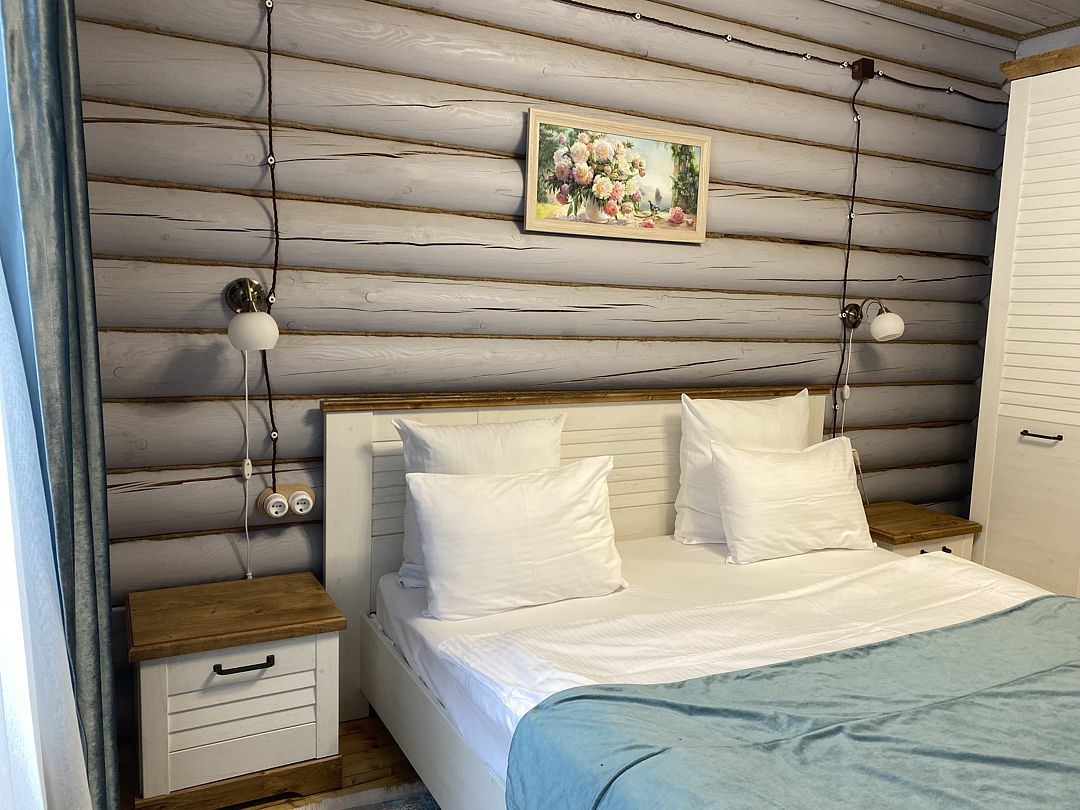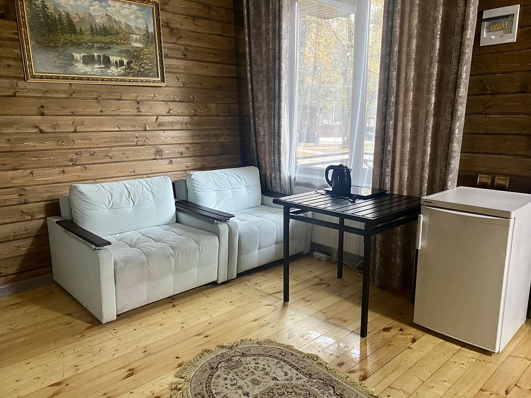 Уютные номера в домике из сруба. В домике располагается четыре стандартных номера с отдельными входами. В номере есть все необходимое для комфортного отдыха.
