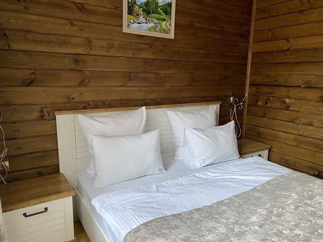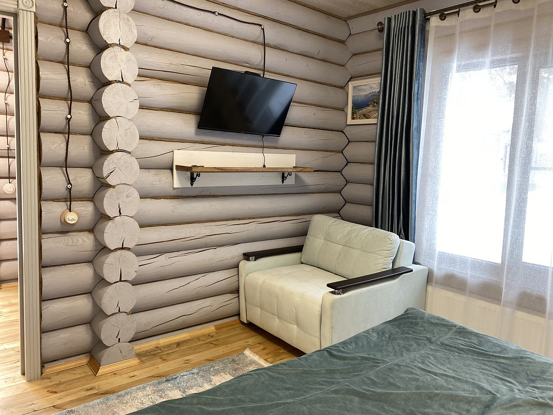Уютные номера в домике из сруба с живописным видом. В домике располагается четыре стандартных номера с отдельными входами. В номере есть все необходимое для комфортного отдыха.