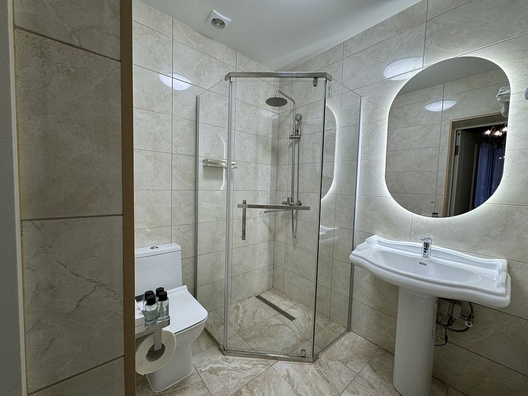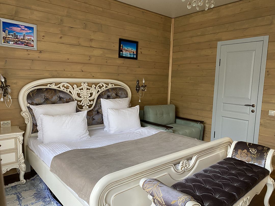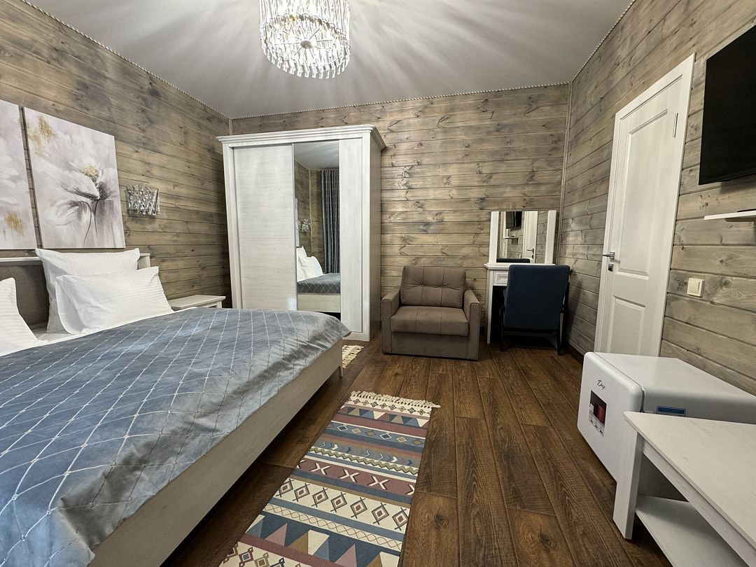 Просторный светлый номер. Есть все необходимое для комфортного отдыха. Размещение до трех человек (в номере двухспальная кровать + кресло раскладное).
