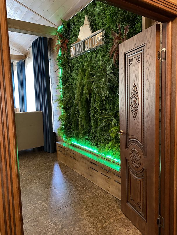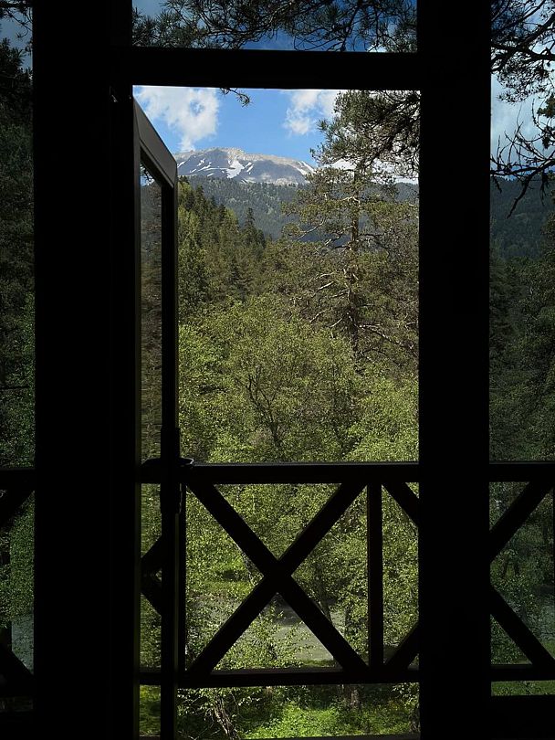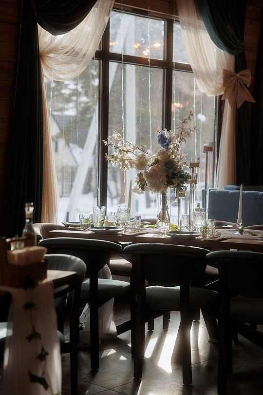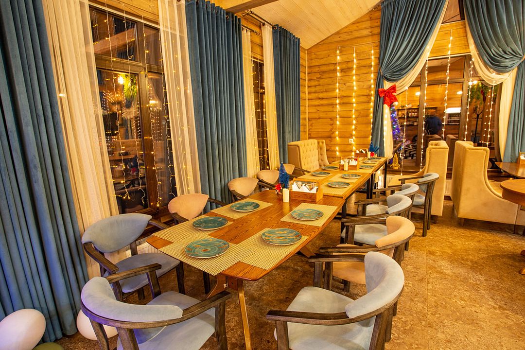Уютная атмосфера зала, способного вместить до 95 человек, создает идеальные условия для проведения различных торжеств: банкетов, свадеб и корпоративных мероприятий. Вокруг - горные вершины, дикая природа, от которой захватывает дух. Воздух здесь просто фантастический. Кажется, что оказался в другом - волшебном - мире