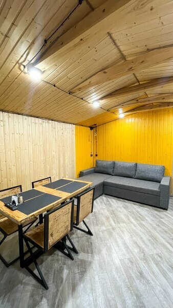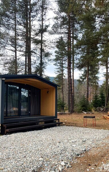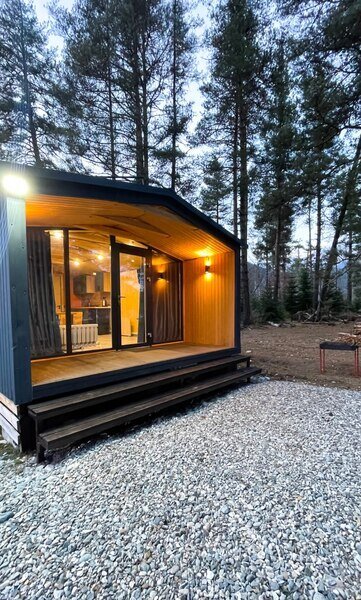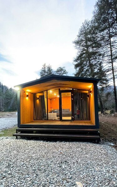 «LaFa Glamp» предоставляет для проживания новые комфортабельные домики с двумя комнатами, оборудованными всеми удобствами: гостиная зона с кухней, столовая зона, ванная комната и спальня.