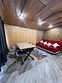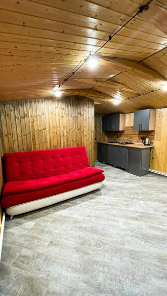 В бане — парилка, зона отдыха со столом и лавочками, санузел с душем, шкаф с посудой, холодильник, чайник.