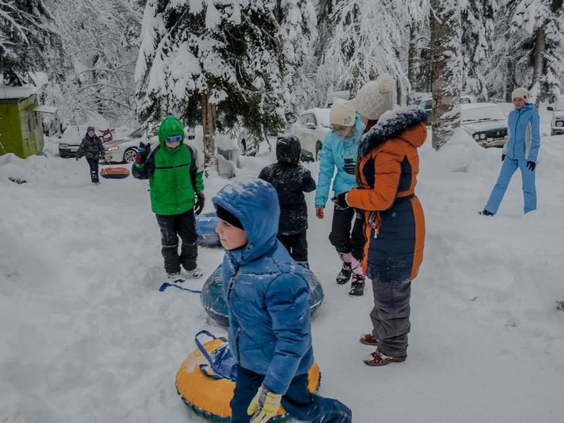 Горнолыжная трасса предназначена для начинающих лыжников. Имеется снежные горки для спуска на надувных "бубликах".