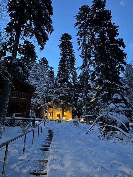 февр. 2020 г.Сказочный домик в горахЕздили с семьей кататься на лыжах в Архыз и остановились в гостевом доме "Лесогорье". Оба наши номера были небольшого размера, но в них было все необходимое для того, чтобы комфортно проводить вечер-ночь-утро (днем катались). Дом бревенчатый, теплый, уютный. Все детали интерьера подобраны с душой. Удобная постель, красивое постельное белье, отличные полотенца и пр. С водой (в том числе горячей) и электричеством проблем не было. Светлана, управляющая, обходительная, приветливая, всегда готова помочь, быстро решает все вопросы. Гостевой дом расположен в стороне от основной дороги в тихом спокойном месте, окружен высокими соснами, по которым прыгают белки. По вечерам можно прогуливаться по окрестностям и любоваться горами. Иногда во время прогулки к вам могут присоединиться дружелюбные местные коты))) В непосредственной близости от дома есть маленькое кафе с отличным выбором вкусных домашних блюд, где вас встречают как родных. Кстати, до горнолыжного курорта ехать около 10 км, добираться быстро и удобно. Мы арендовали автомобиль в г. Минеральные воды. Около гостевого дома есть парковка. В общем, всё сплошной восторг! Рекомендуем!