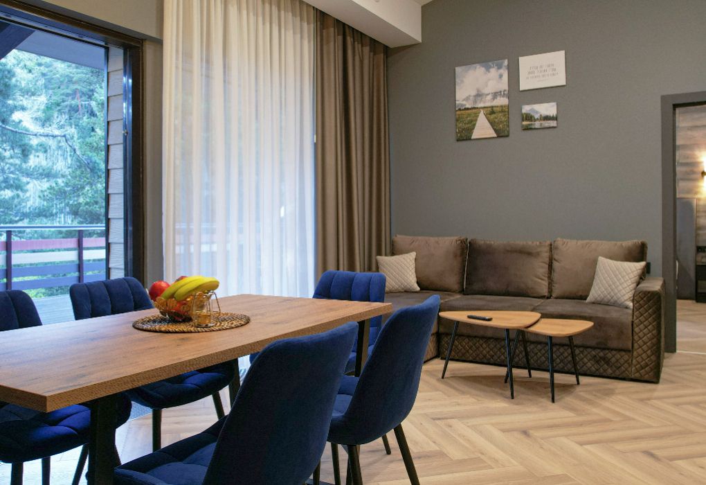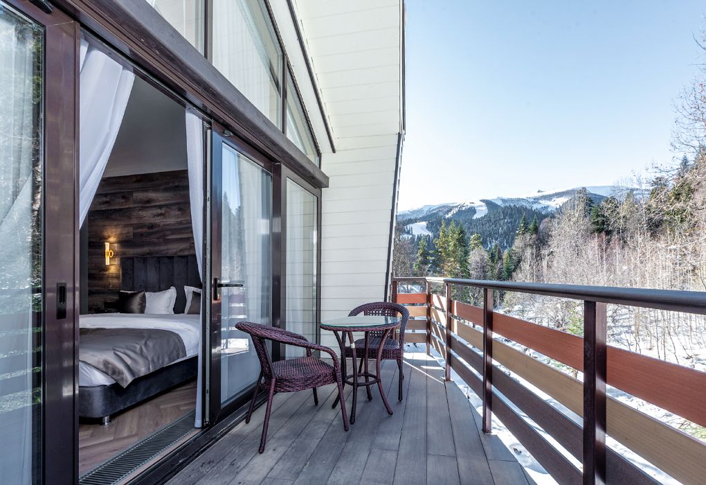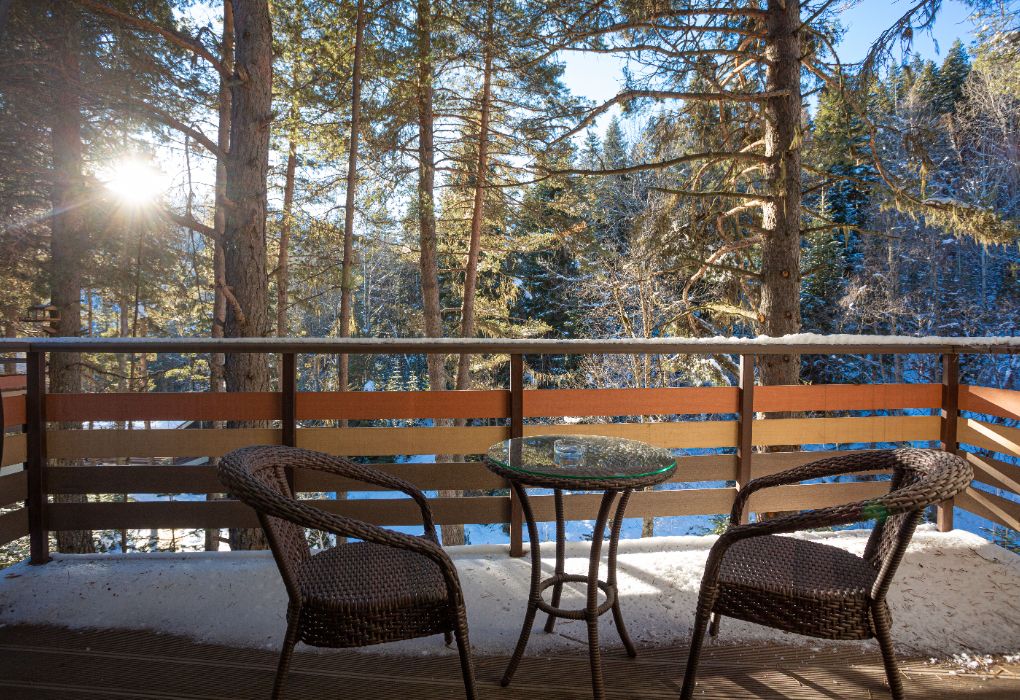 - современная приватная лаунж зона с изумительным видом на горы и сосновый лес