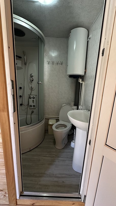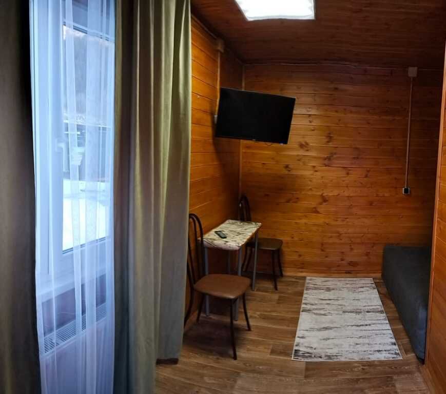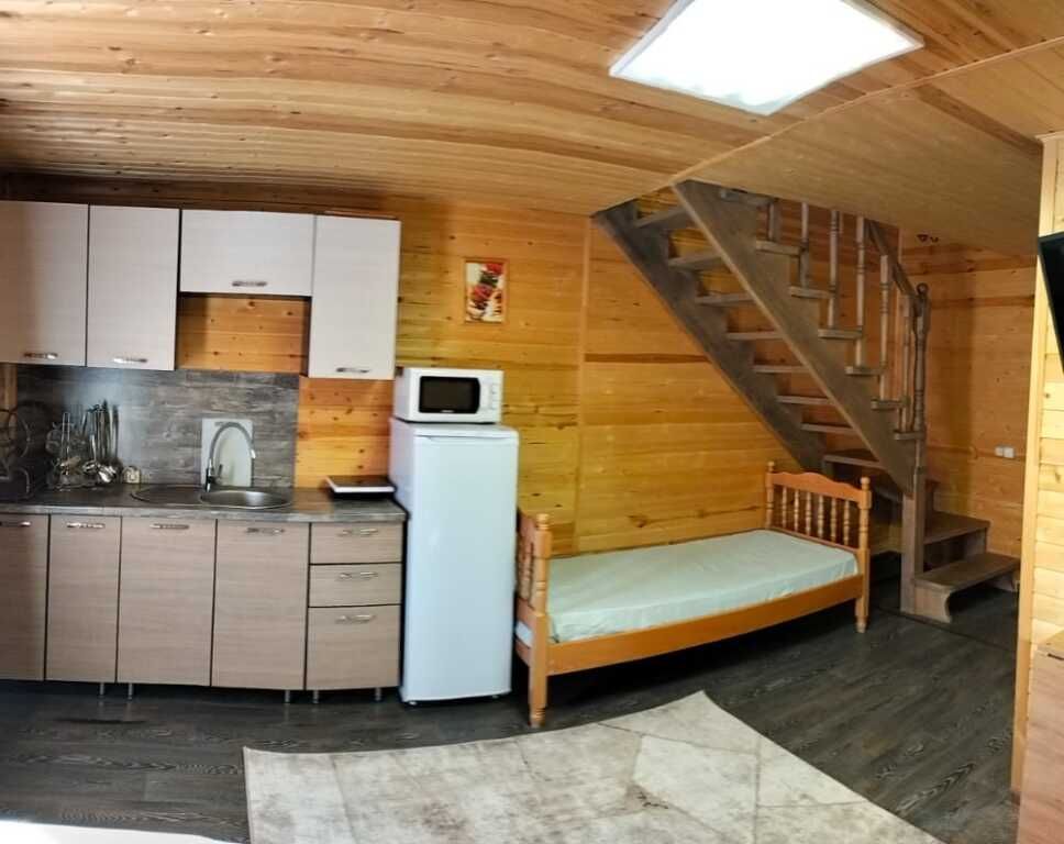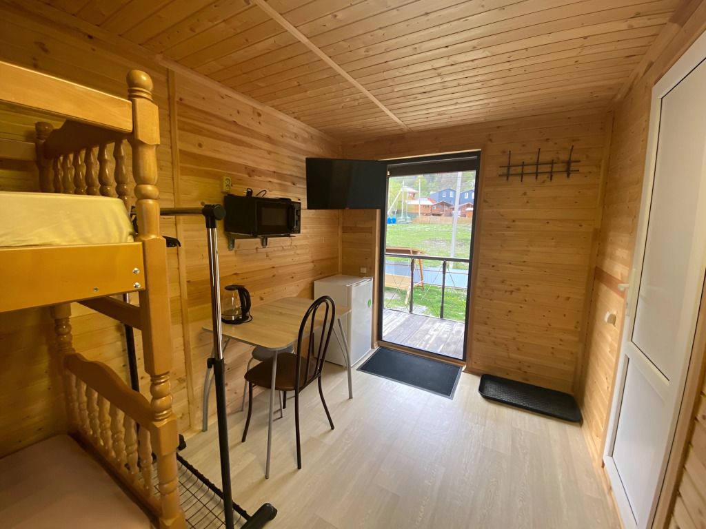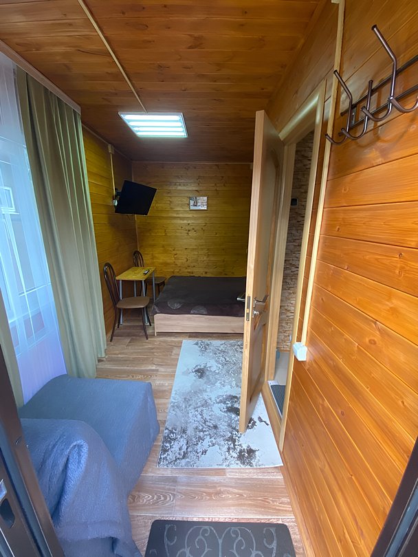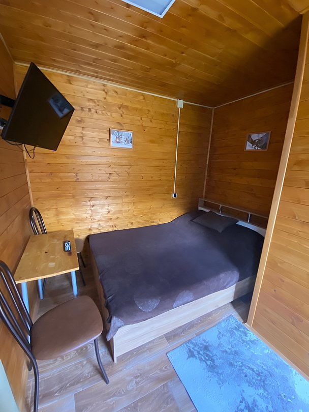 Однокомнатный 3-х местный домик с санузлом. Отличный вариант для одного гостя или семьи из трех человек.