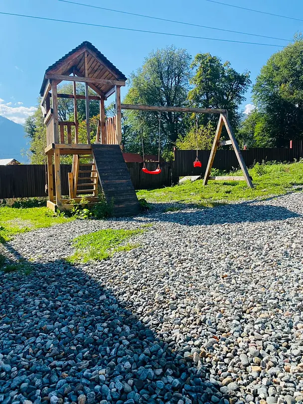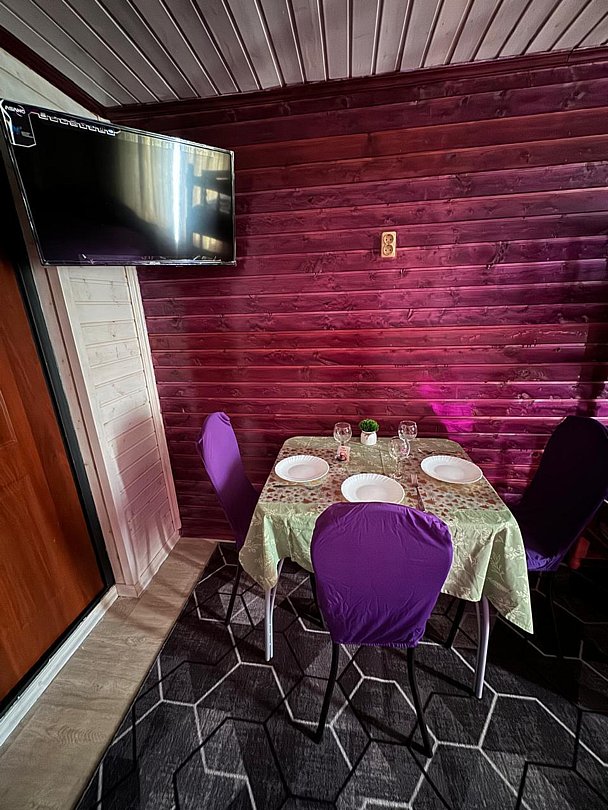 На территории есть баня, настольный теннис, площадка для барбекю, парковка и Wi-Fi для связи с миром.