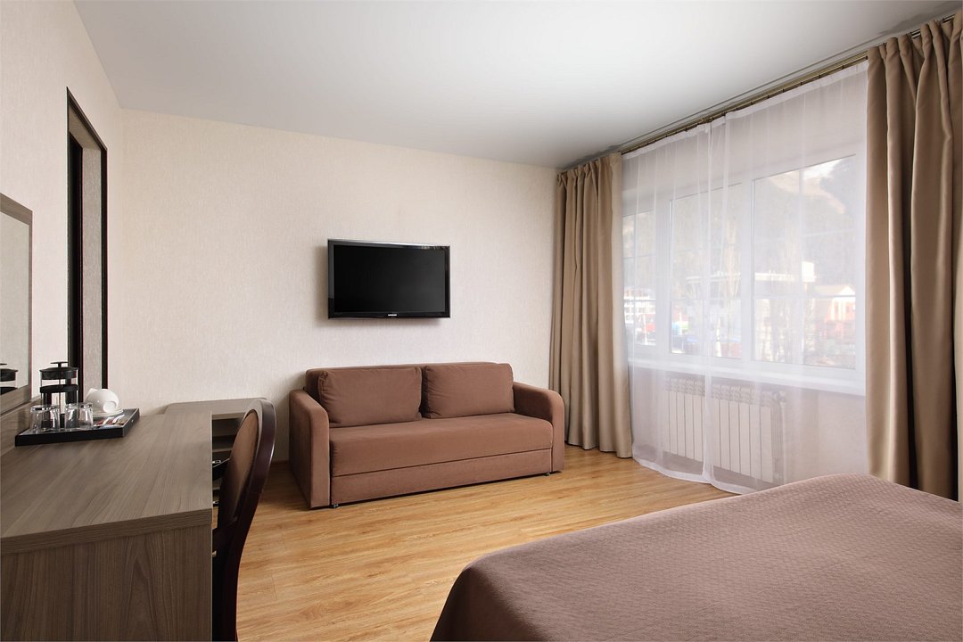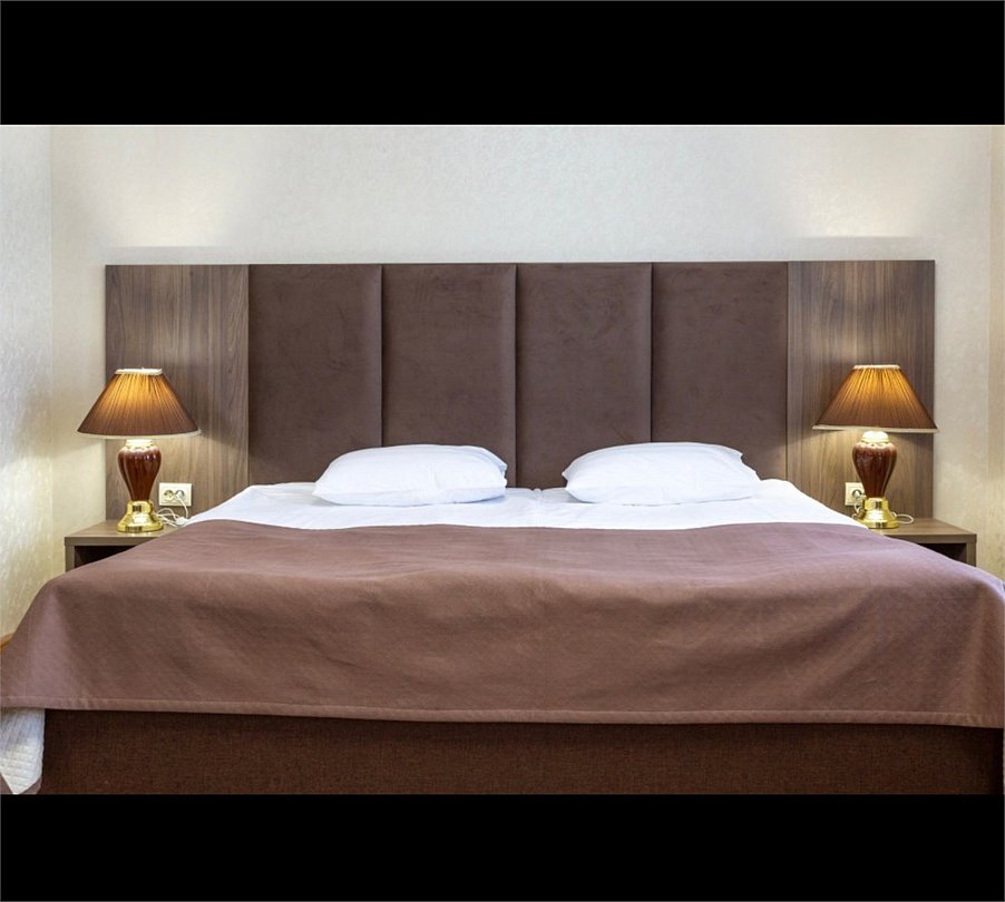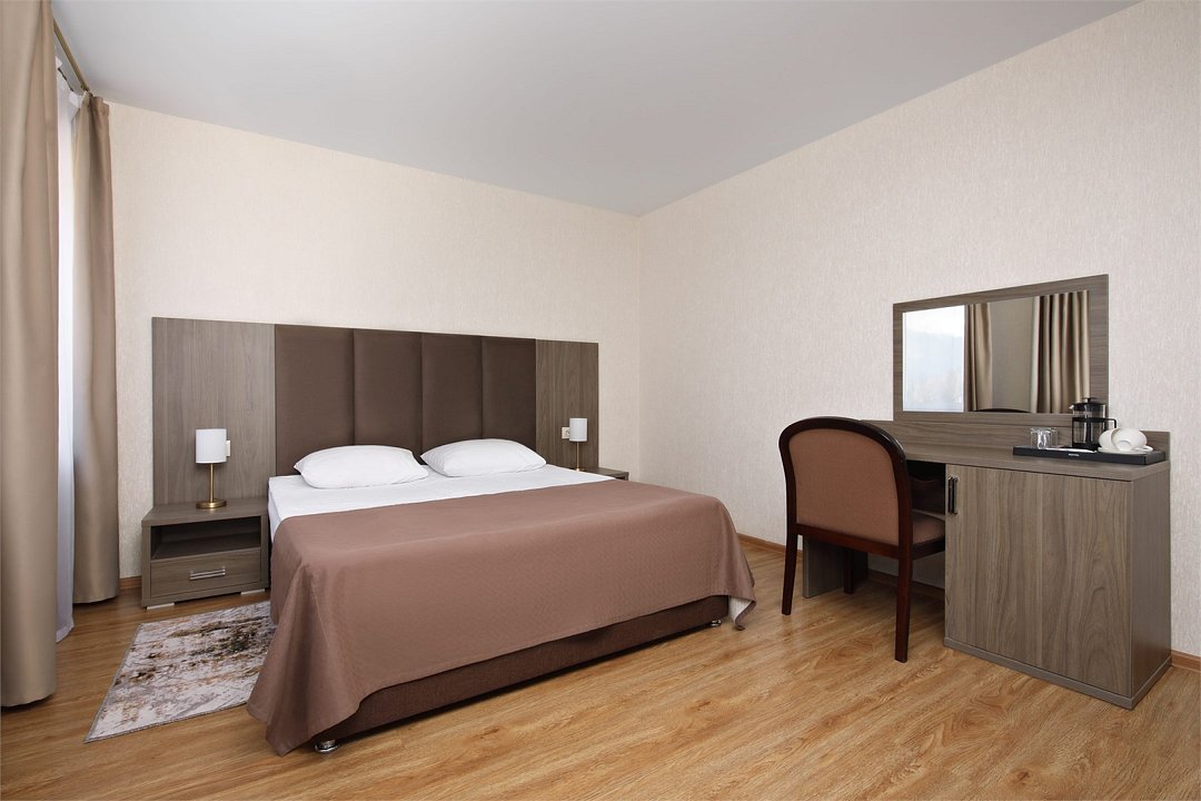 Просторный стандартный номер подойдёт для размещения семьи. В номере: двуспальная кровать с дополнительным раскладным местом (по запросу), прикроватные тумбочки, вместительный шкаф, столик для детских игр. Ванная оборудована душевой кабиной, полотенцесушителем и детскими туалетными принадлежностями . В номере поддерживается комфортная температура благодаря регулируемому кондиционированию.Услуги и удобства