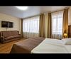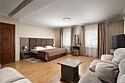 Номер категории «Полулюкс» — воплощение комфорта и элегантности. Просторное помещение площадью от 40 м² включает обособленную спальню с кроватью king‑size (200 см в ширину) и уютную гостиную зону с мягкой мебелью. Интерьер выполнен в изысканной цветовой гамме с использованием премиальных материалов. В номере: рабочий стол, ЖК‑телевизор в каждой зоне, мини‑бар, сейф, кофемашина. Ванная комната оснащена двойной раковиной, ванной с гидромассажем и душевой кабиной. Гостям предоставляются халаты, тапочки и косметика премиум‑класса.Услуги и удобства