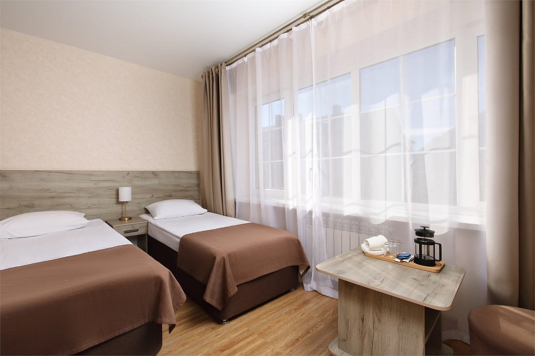 Практичный номер с двумя кроватями — база для насыщенных поездок. В интерьере: компактные системы хранения, зеркало во весь рост, стол для планирования маршрутов. Каждая кровать имеет индивидуальное освещение и розетки у изголовья. В номере: кондиционер, мини‑холодильник, электронный сейф. Рядом с номером — зона для сушки спортивного снаряжения (по запросу).Услуги и удобства