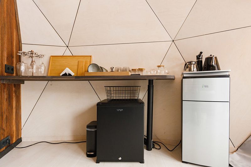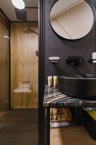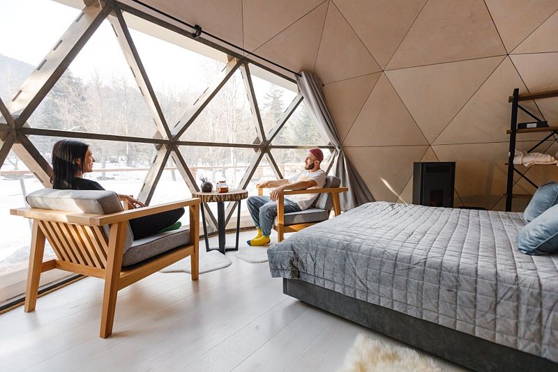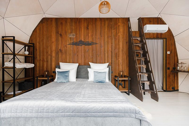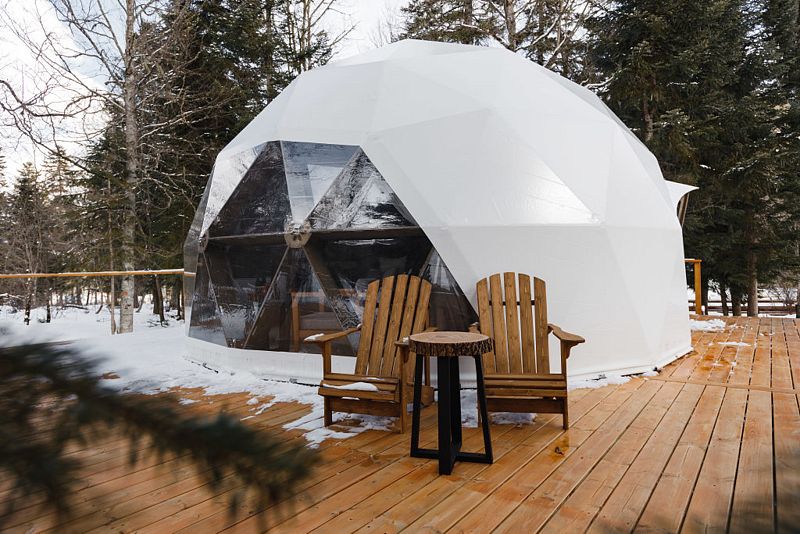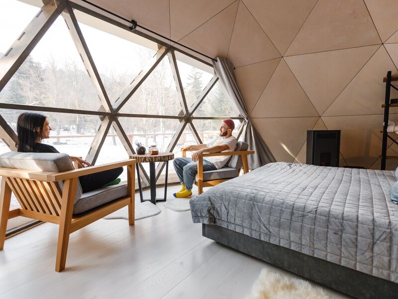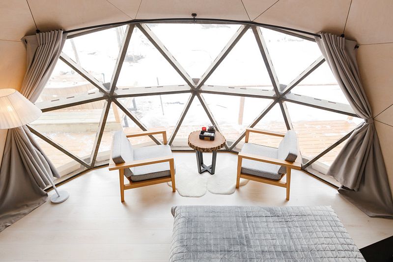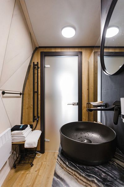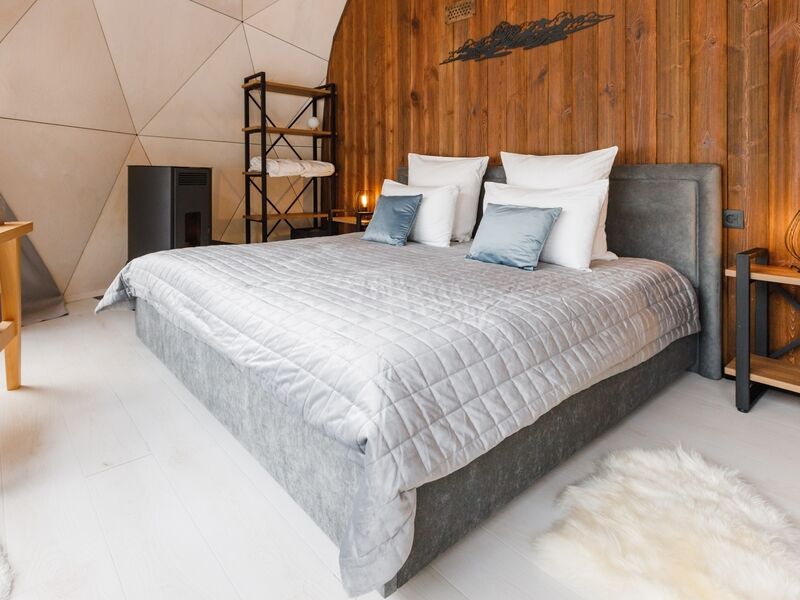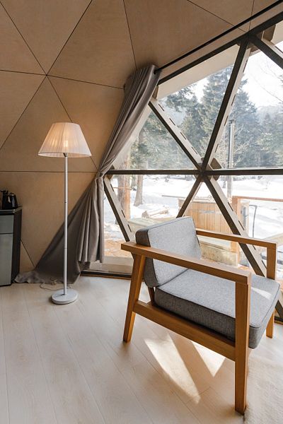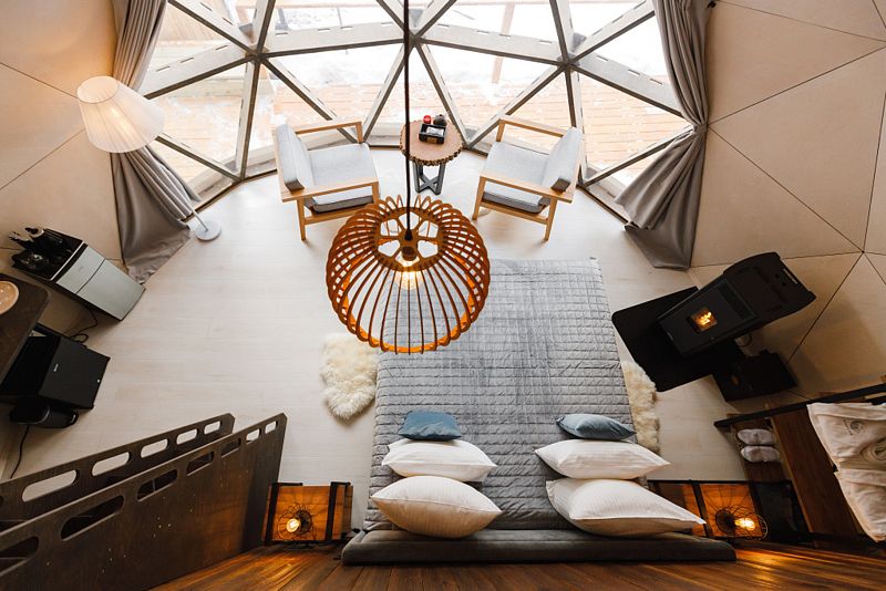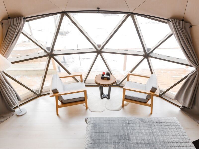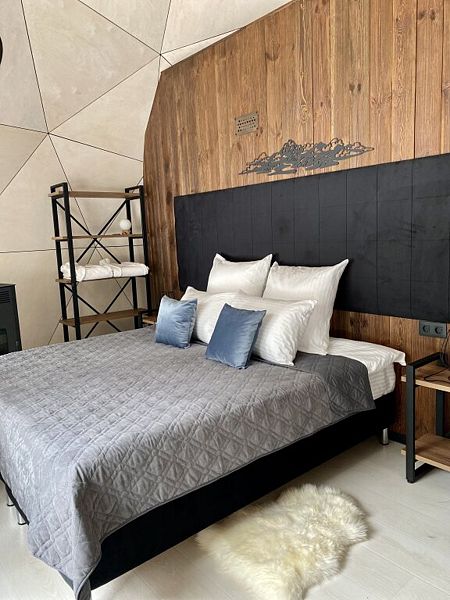 Каждая сфера оснащена террасой 70м2, панорамным окном, пелетным камином, мягкими и удобными креслами, вторым этажом и всеми необходимыми удобствами.