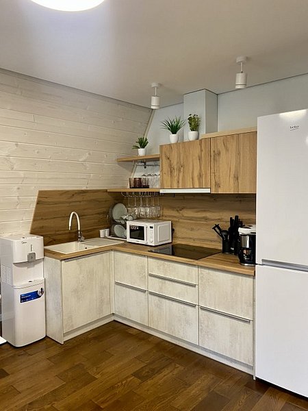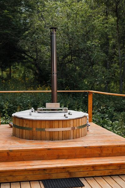двуспальная кровать, с/у, фен, кухонная зона, камин, Wi-fi, японская баня Фурако на террасе, мангальная зона