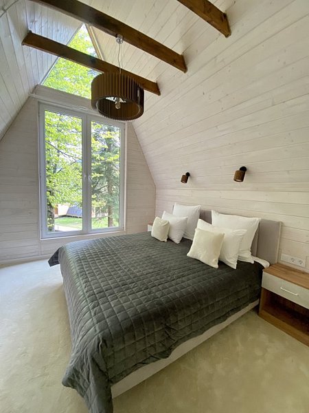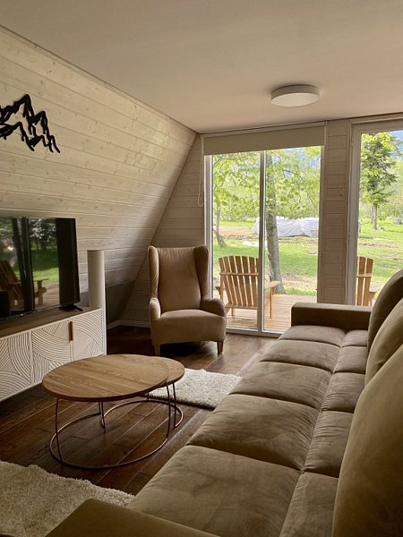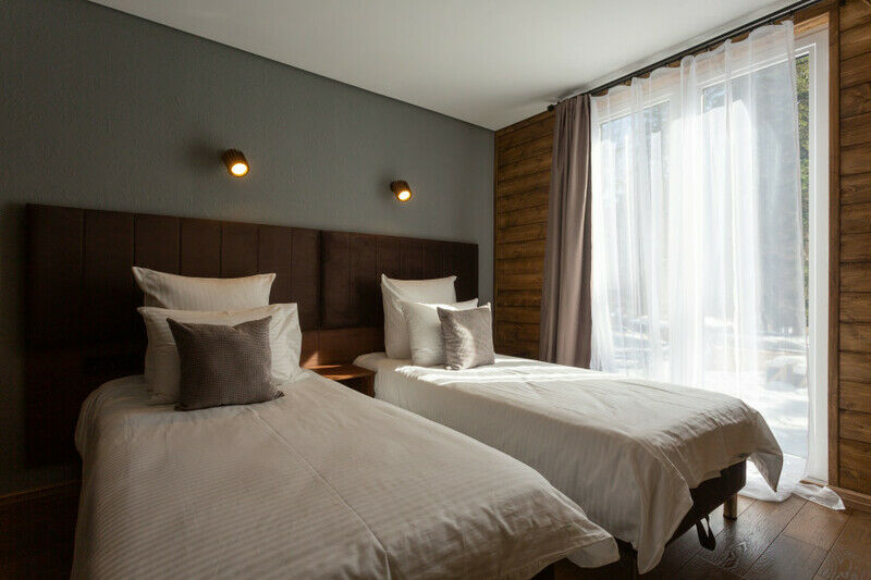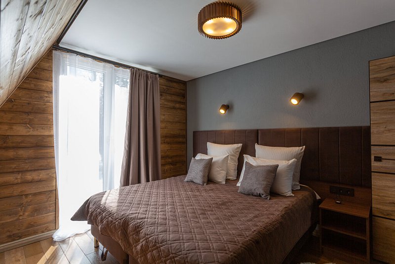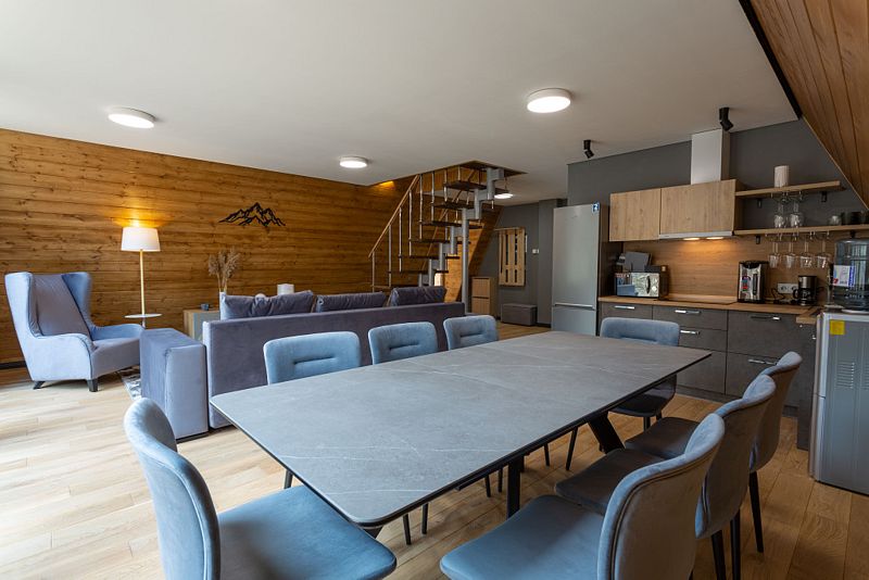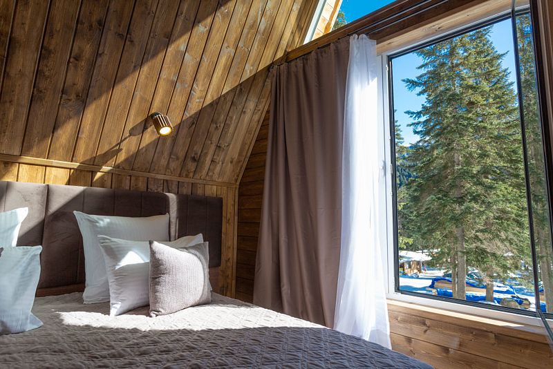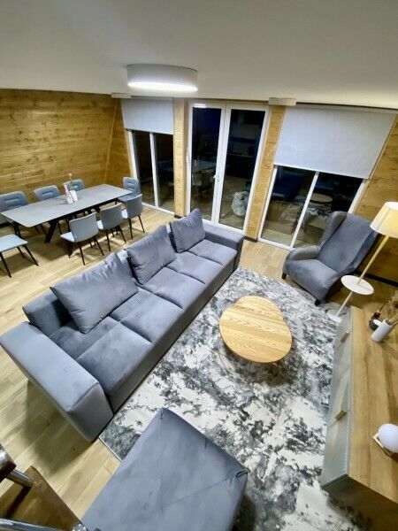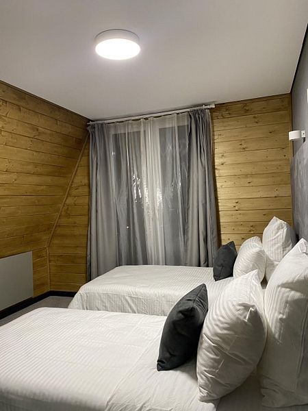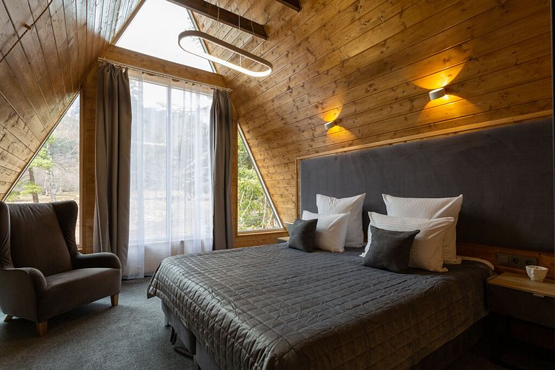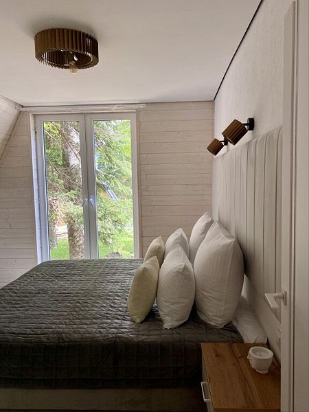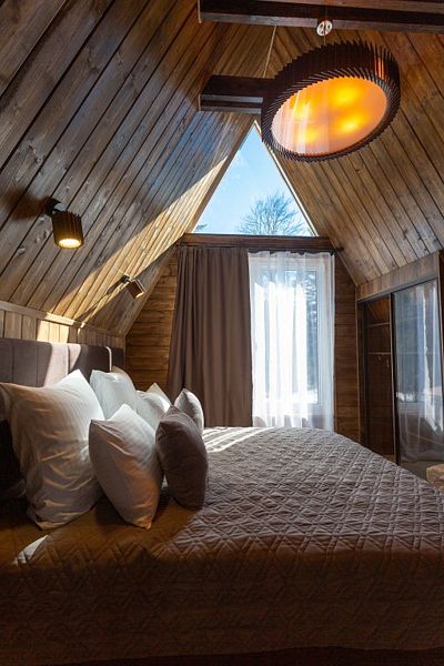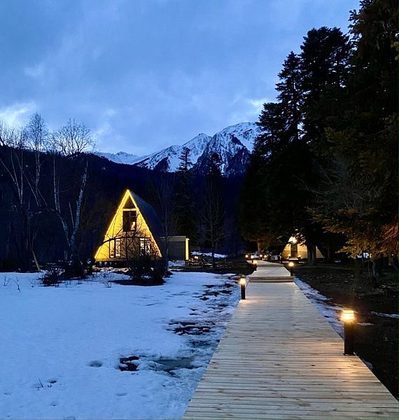 Двухэтажный Большой дом-треугольник Это лучшая категория для отдыха в большой компании с лучшим видом на горы. На данный момент, это самый просторный номер на курорте в премиальном сегменте. Дом станет личной уютной резиденцией на время Вашего отдыха.