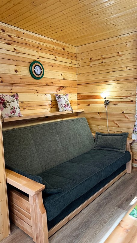В домике может комфортно проживать от двух до пяти человек. Вы найдете полностью оборудованную кухню, душ с необходимыми принадлежностями, фен, а также по три полотенца на одного человека (лицевое, банное и для ног).