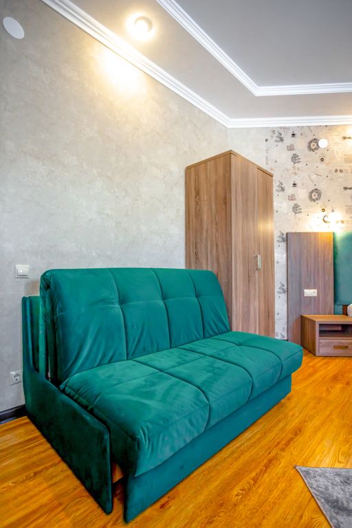 Комфортный однокомнатный номер с большой двуспальной кроватью и двухместным раскладным диваном.