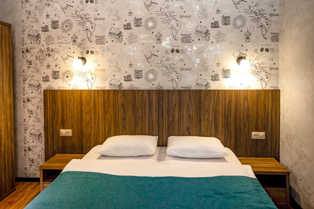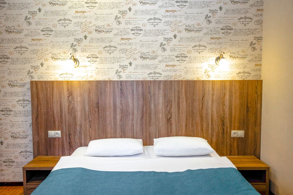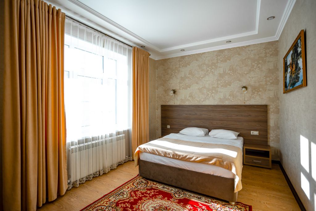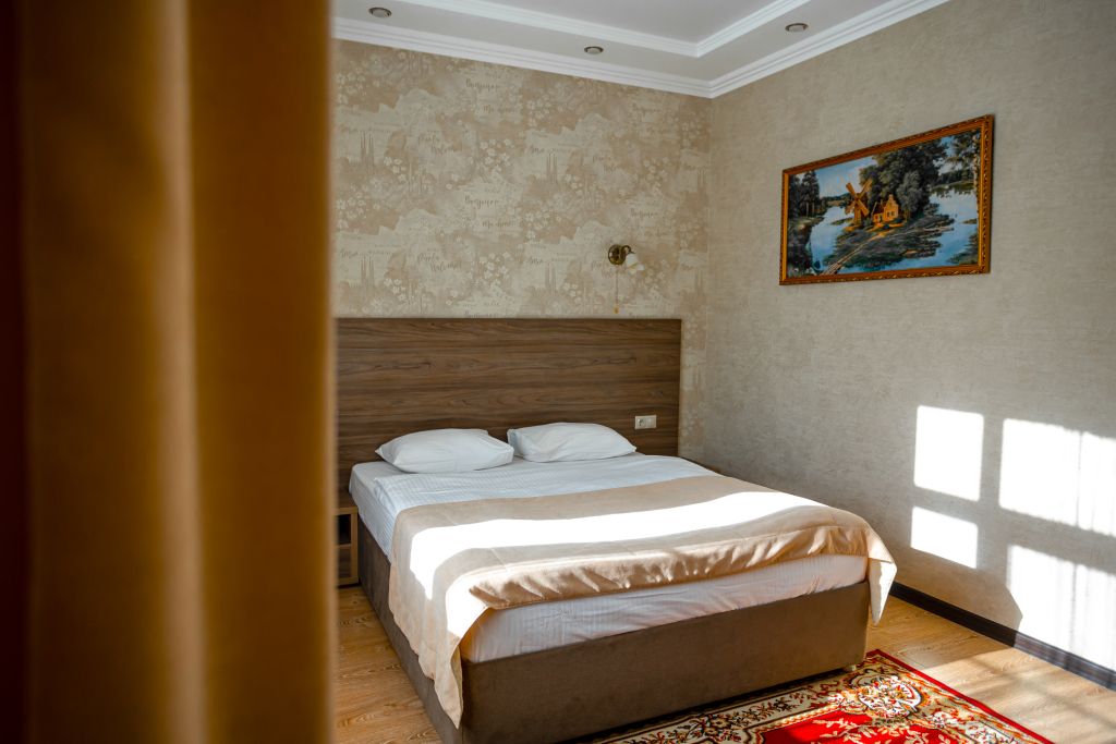 Уютный однокомнатный номер с одной двуспальной кроватью.