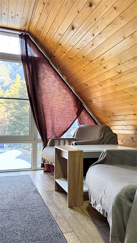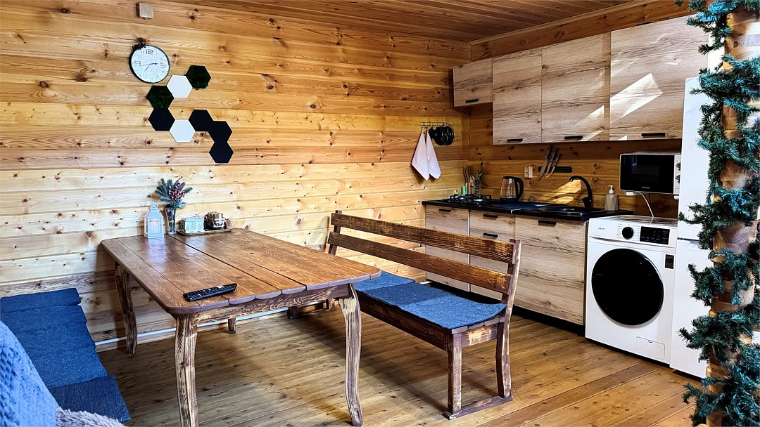 спутниковое телевидение, Wi-Fi, холодильник, фен, плита для приготовления пищи, микроволновая печь, обогреватель, ванная комната, душевая кабина, ванна или душевая кабина, санузел, банные полотенца, тапочки, косметические средства, две односпальные кровати, две односпальные или большая двуспальная кровать, диван, стулья, обеденный стол, ковер, кухня, чайник, унитаз, раковина, мягкая мебель, питьевая вода, обеденная зона, гостиная зона, кресло, кухонная посуда, стаканы, кухонная утварь, столовые приборы, стол, туалетные средства, мангал, москитная сетка, вид на горы, телевизор со Smart TV, вид на лес, два дивана-кровати, набор для приготовления чая и кофеВ коттедже