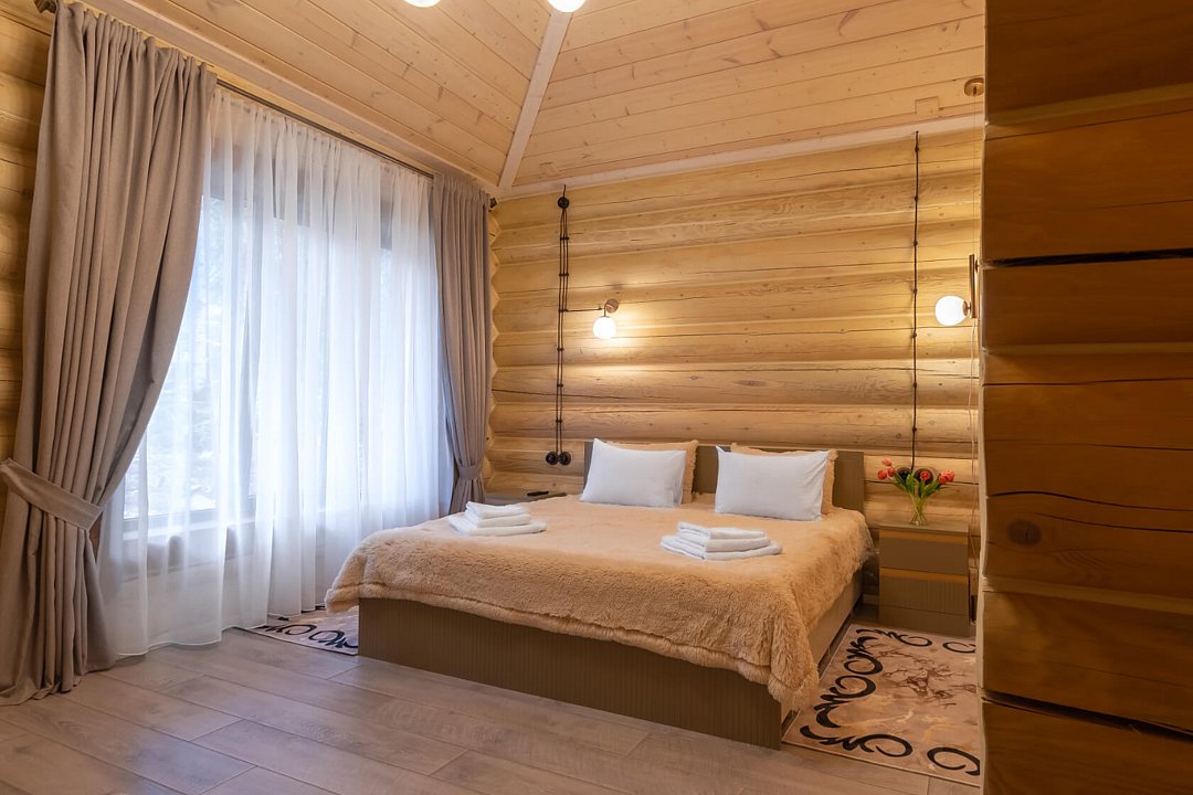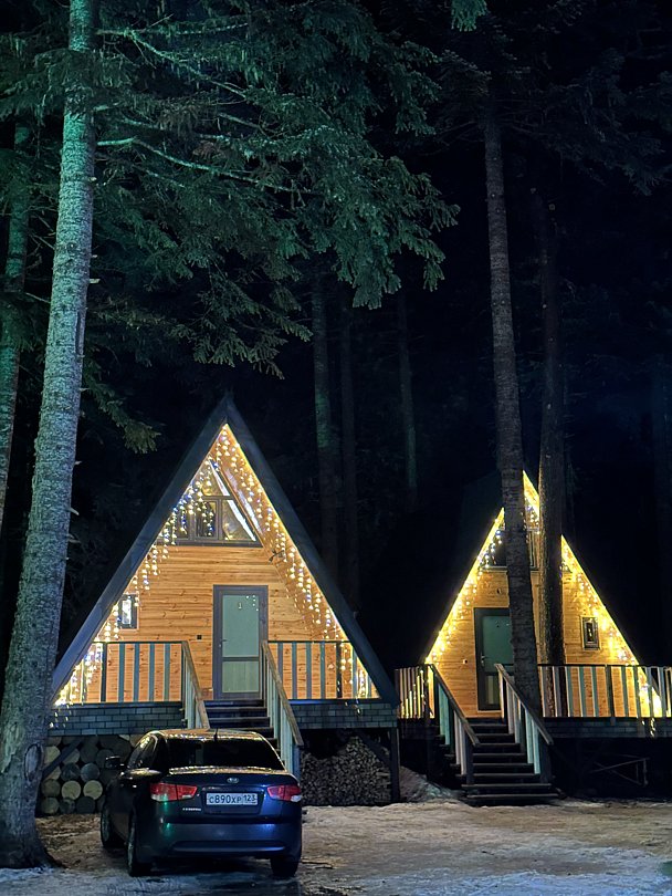 К вашим услугам разнообразные варианты размещения: традиционные срубовые дома, современные А-фреймы и уютные домики с персональными террасами и мангальными зонами. Каждый дом оборудован кухней, комфортными спальными местами, теплым полом и собственным санузлом.