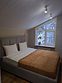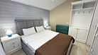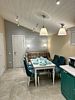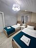 Уютный двухкомнатный номер с одной двуспальной и двумя односпальными кроватями, прихожей и небольшой кухонной зоной.
