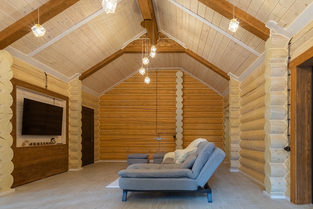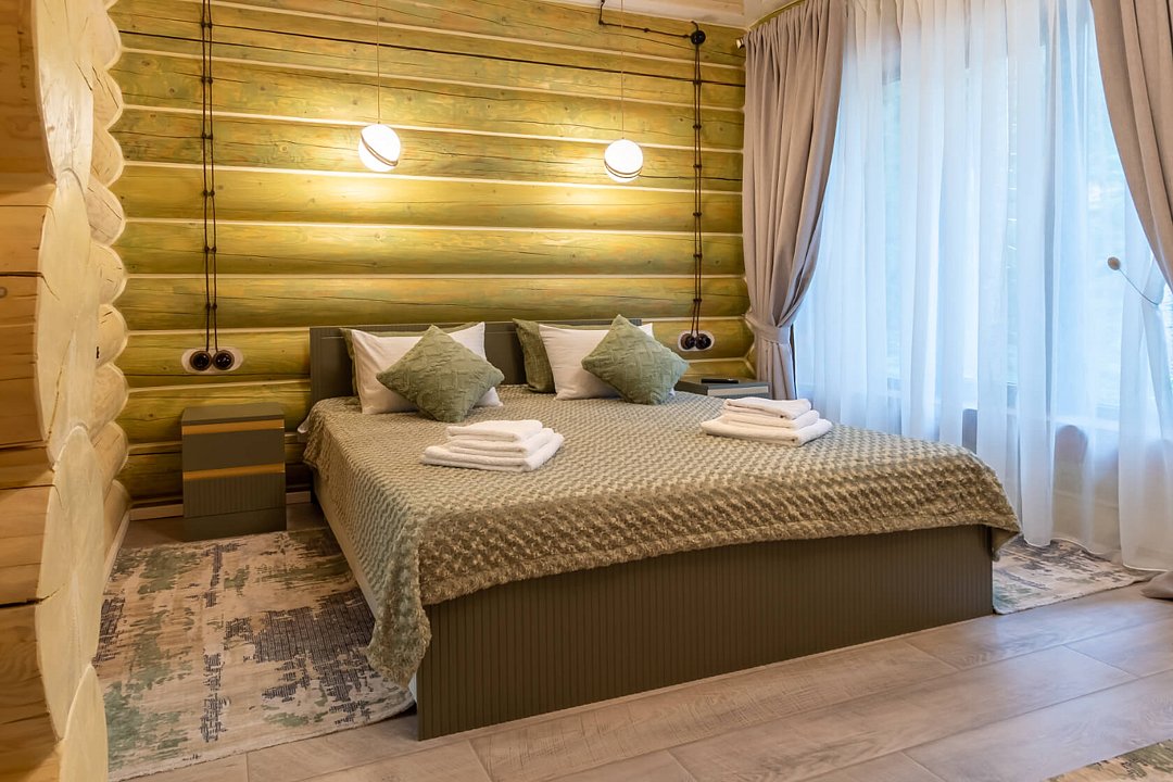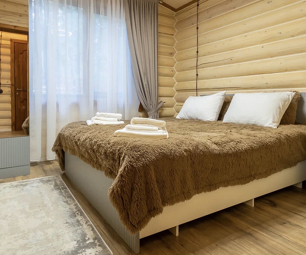 Две двуспальные кровати, одна диван-кроватьВ срубе