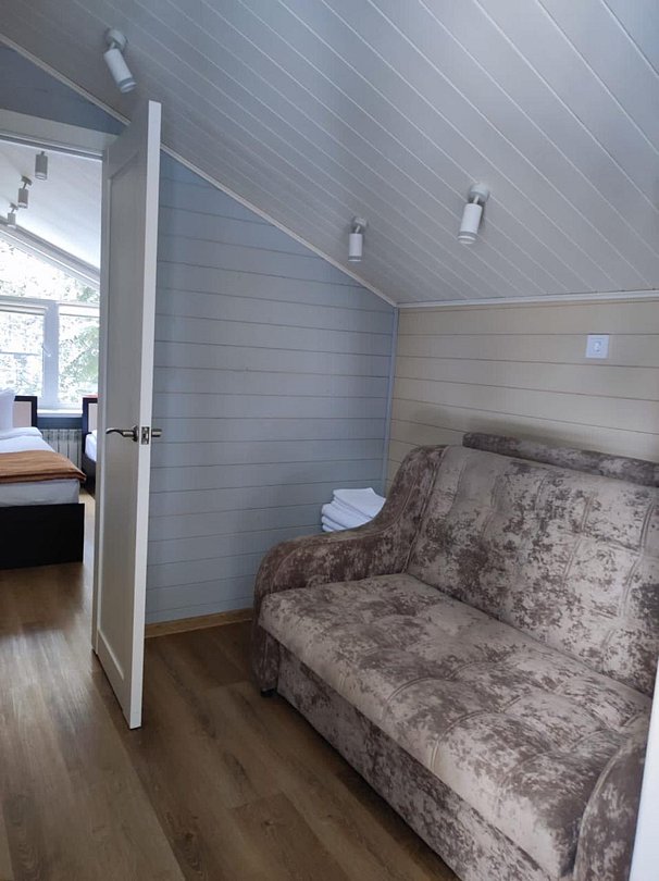Две односпальные кровати, одна двуспальная кровать, одно раскладное креслоВ эко-доме