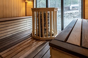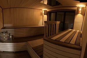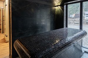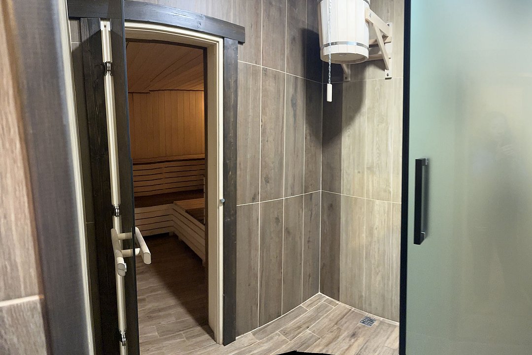 В комплексе предусмотрены финская сауна и турецкий хаммам с панорамными окнами, которые наполняют пространство естественным светом и создают ощущение единения с природой. В хаммаме установлен массажный стол, что позволяет полностью расслабиться и получить удовольствие от процедур.