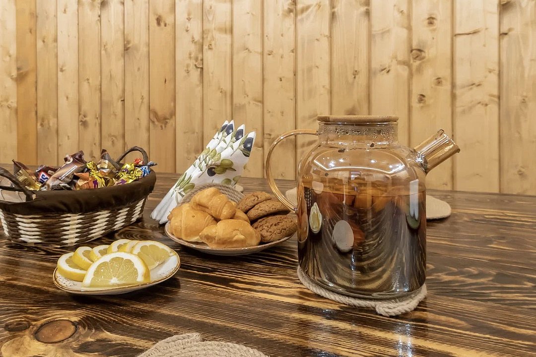 Инфраструктура: зона отдыха, чай/угощенияК услугам гостей базы отдыха «Пихта-парк» уникальный банный комплекс площадью 100 м², сочетающий в себе современный дизайн и продуманные детали.