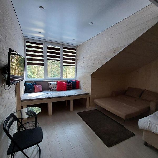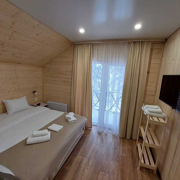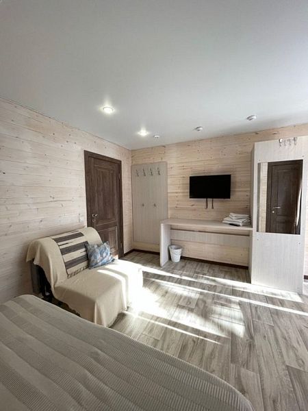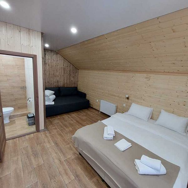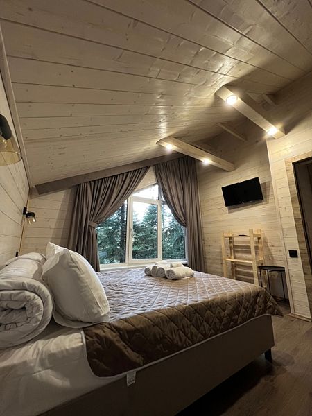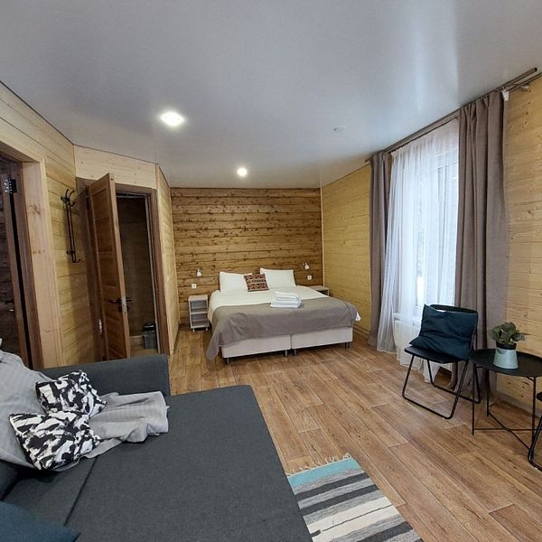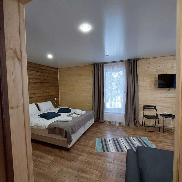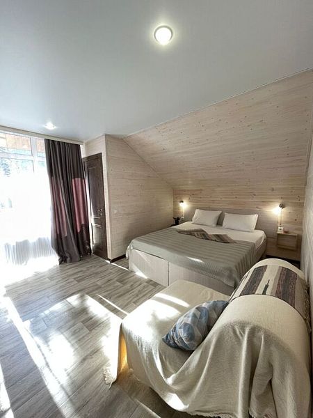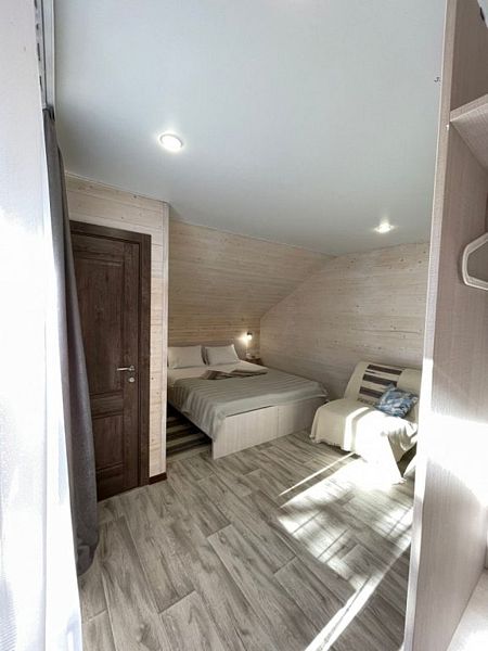 Вас ждёт двухэтажный дом с уютными номерами и коттеджи для больших компаний, которые идеально подойдут для семейного отдыха или отдыха с друзьями.