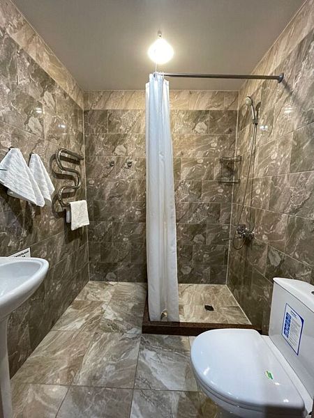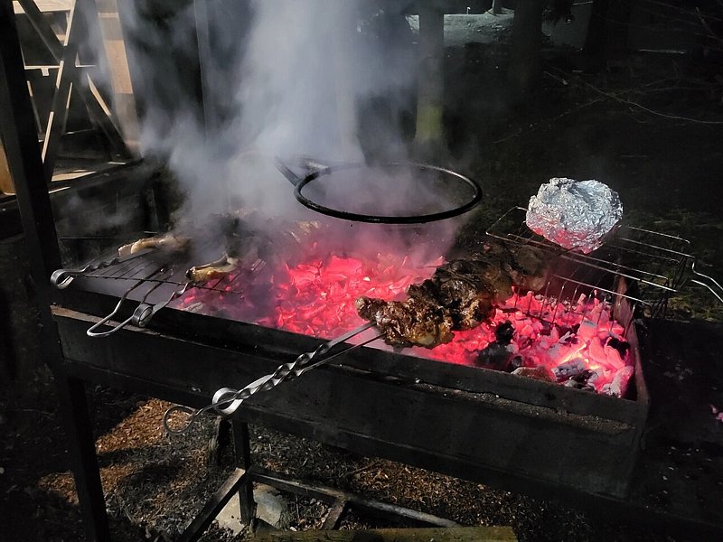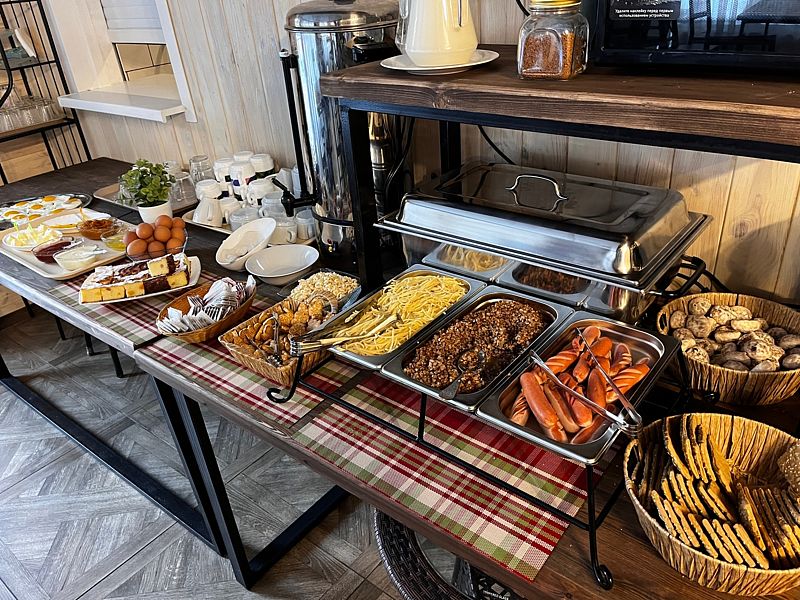 В сезон в столовой подаются вкусные завтраки. Также можно приготовить еду самостоятельно на общей кухне или в специальной мангальной комнате.