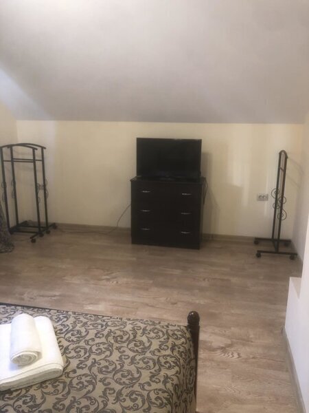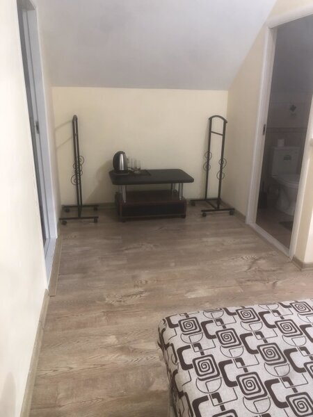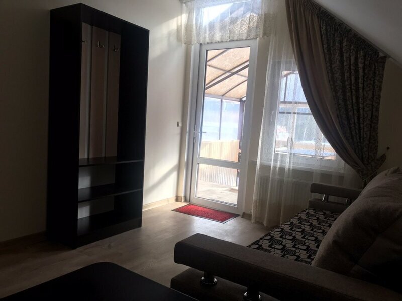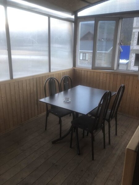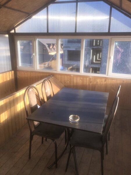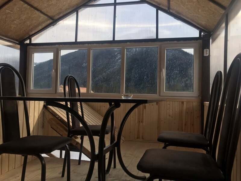 Размещение: В отеле 5 номеров. Номера нормальные, чистые, места вполне хватает. Самый лучший (по моему мнению) это 5-ый номер на третьем этаже. Там кровать и раскладной диван расположены в разных комнатах, т.е. номер фактически двухкомнатный. Перед входом в номер небольшая крытая верандочка со столом и стульями. Из окна веранды прекрасный вид на горы. Остальные с 1-го по 4-ый номера идут как однокомнатные, но за каждым номером закреплены тоже небольшие застекленные веранды. В каждом номере индивидуальное отопление (включаете электрический нагреватель воды, выставляете нужную Вам температуру и горячая вода поступает только в Ваш номер). В каждом номере свой туалет и ванная комната. Предупреждаю сразу - зубные щетки, пасты и тапочки необходимо брать свои. В каждом номере телевизор.