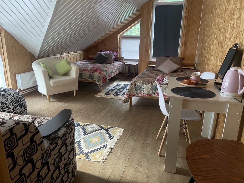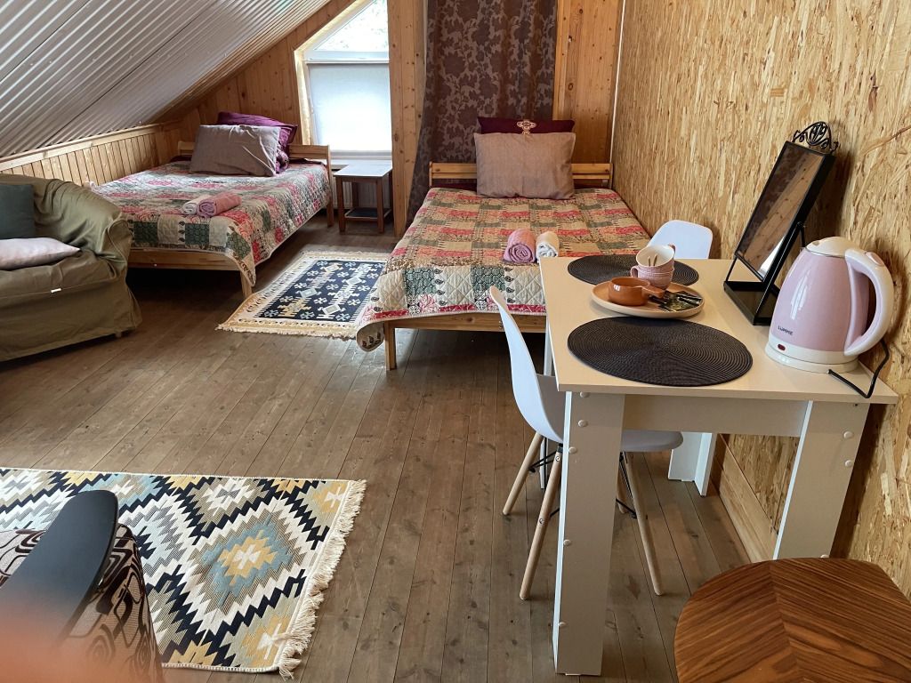 В номерах создан по-настоящему домашний уют и комфорт, а радушие и гостеприимство хозяев делает отдых еще приятнее и теплее. Общая кухня оборудована для самостоятельного приготовления пищи. В отеле есть бесплатный Wi-Fi. Специально для автопутешественников организована парковка. Также для гостей в отеле: баня.