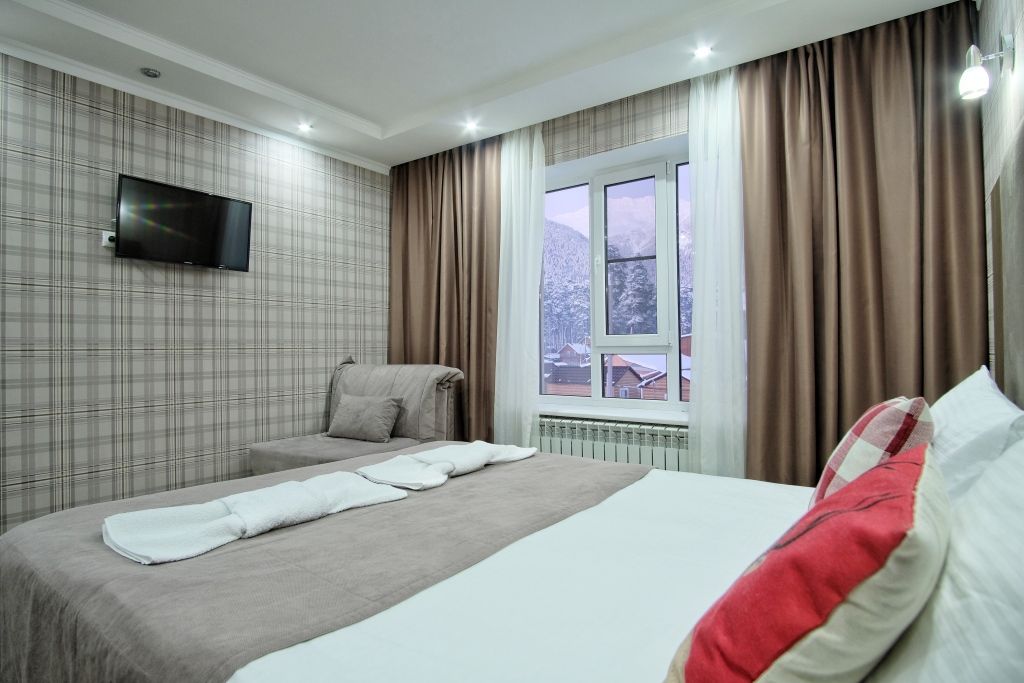 Бронируем номера здесь уже третий год подряд!!! Лучший отель! 1000 из 10!!! Потрясающий персонал, в номерах чисто и всегда убирают, хороший ремонт, отличная мебель. Есть крытая парковка - а в горах это очень важно. Всегда берем завтраки, так как здесь готовят с душой и все очень вкусно. В этом году попробовали обеды в кафе отеля и должны сказать, что очень пожалели, что не обедали и не ужинали тут раньше. Еда потрясающая!!! Все очень вкусно, сытно и сделано с любовью. Теперь будем брать не только завтраки.