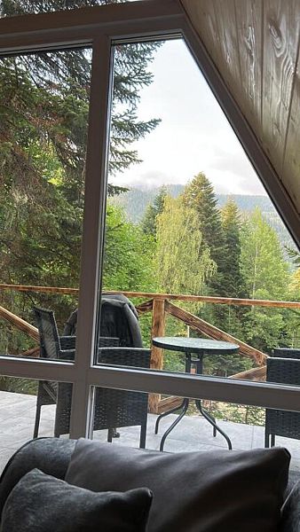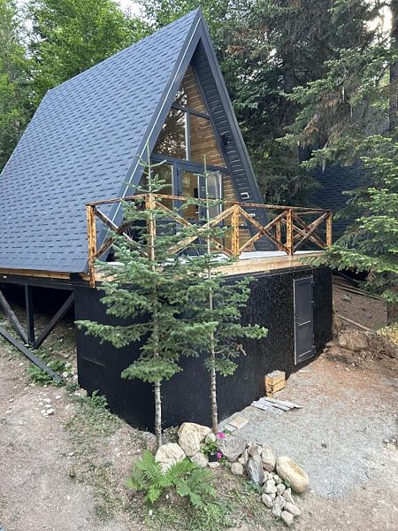 Дом в стиле А-фрейм с закрытой террасой и панорамным окном. Расположен в хвойном лесу. В доме очень уютно и комфортно, теплый пол, горячая вода и туалетная комната. Дом рассчитан на 4 гостей +1 доп.При необходимости предоставляем евро раскладушку. Есть все необходимое для вашего комфортного отдыха. Кухня оснащена микроволновой и индукционной печами, холодильником, кофемашиной, набором кастрюль, сковородой и красивой стильной посудой. Можно прогуляться по лесу или к реке Архыз, покататься на лошадях или поехать на экскурсию на гигантском квадроцикле. Так же на территории есть мангальные зоны оборудованные уютными беседками. В зимнее время мы предоставляем трансфер до горнолыжного пос.Романтик .