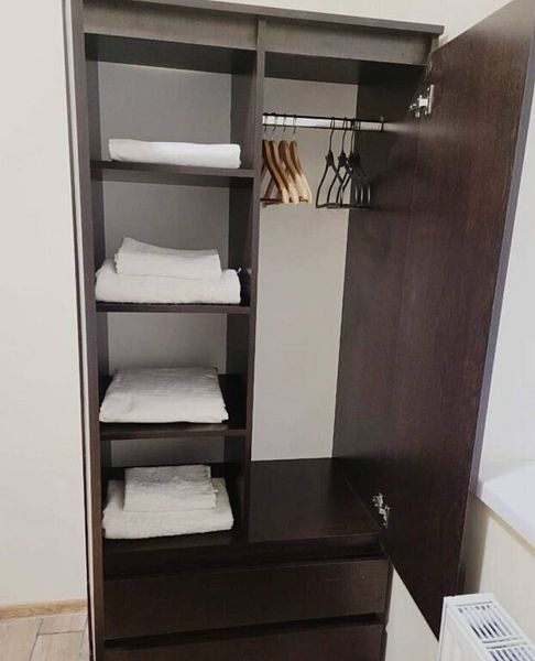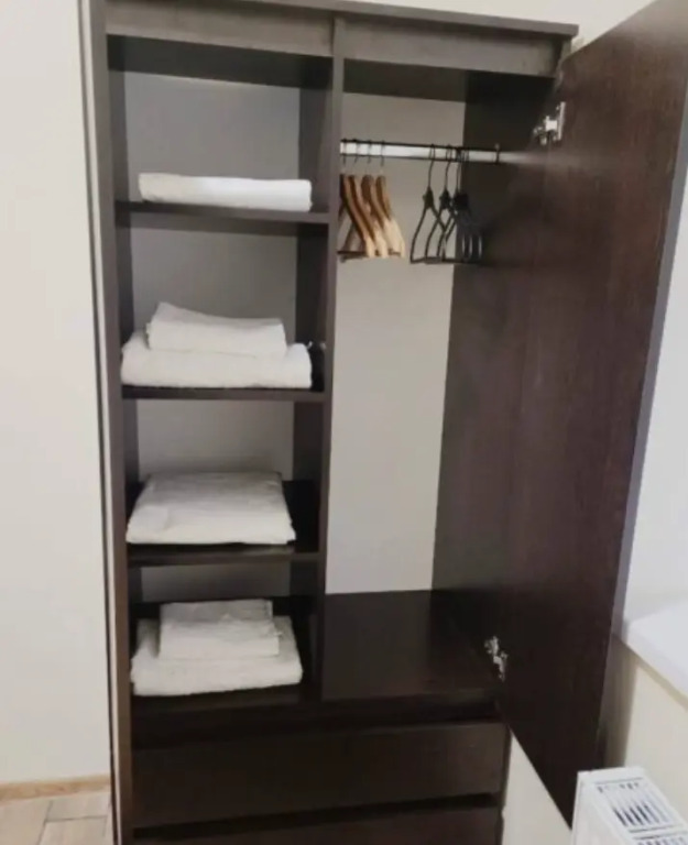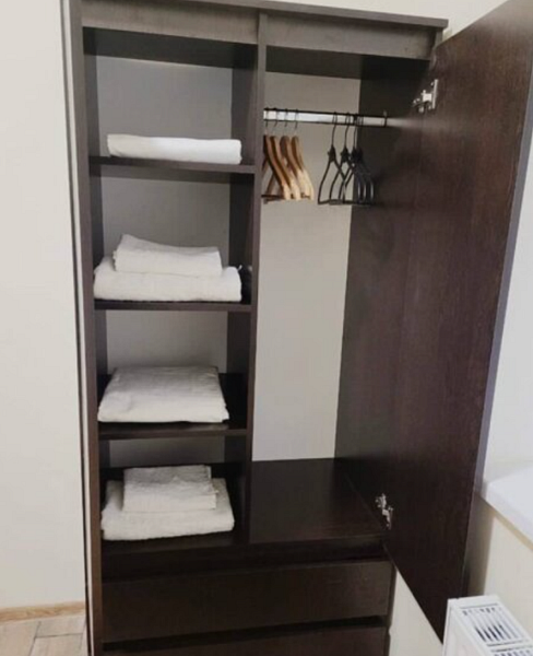 Для гостей подготовлены уютные кровати с комплектом постельного белья и полотенец. В собственной ванной комнате установлена стиральная машина. Также имеется телевизор, датчик климат-контроля и Wi-Fi.