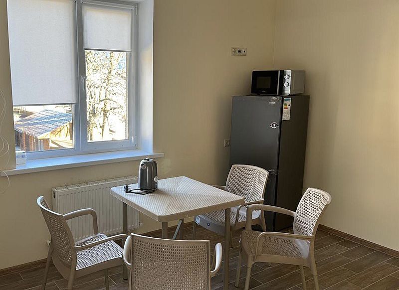 В номере имеется своя веранда, кухня со всей необходимой техникой и посудой. Свой отдельный санузел со стиральной машиной. В номере есть Wi-Fi, климат-контроль с датчиком и управлением в вашем номере. Имеются дополнительные подушки и одеяла.