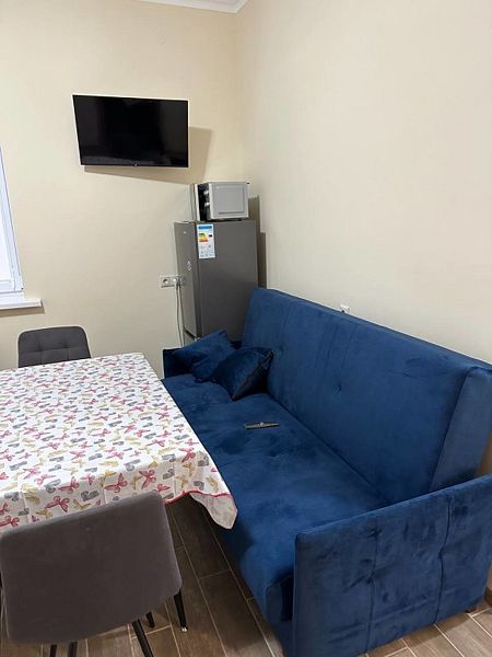 Просторный шестиместный номер с 4 кроватями и двуспальным диваном. Отдельный вход с улицы в номер (1 этаж дома).